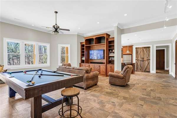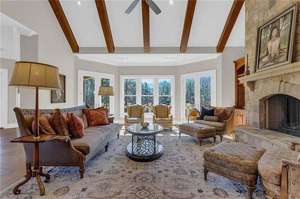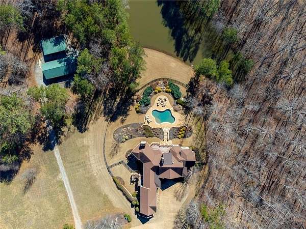 Welcome to Serenity Farm-where sophistication meets serenity. Nestled on over 27 acres of tranquil countryside, this architectural masterpiece features over 10,500 sq ft of luxury living, blending Craftsman elegance with resort-style amenities-perfect for both opulent entertaining and equestrian pursuits. Step inside to unveil a grand open layout with soaring ceilings, hardwood floors, built-ins, and light-filled expanses including a stately dining room, expansive great room, cozy library/office, home theater, fitness suite, and a bonus recreation level. The gourmet kitchen, fitted with custom granite, high-end appliances, and seamless indoor-outdoor flow, anchors this home's heart. Retreat to any of six sumptuous bedrooms, or enjoy the privacy of a 2-bedroom, 2-bath guest cottage-ideal for in-laws or visiting guests. Indulge in the spa-quality lower terrace leading to a relaxing fire pit, hot tub, and pool with breathtaking views over verdant pastures and a reflective pond. Serenity Farm delivers an exceptional equestrian lifestyle with a four-stall barn, riding ring, paddocks, fenced dog run, and expansive pastures-ready for horses or hobby farm ventures. Additional features: alarm system, sprinkler irrigation, three-car garage, generous porch and patio spaces, and a rustic yet refined aesthetic throughout. Perfectly placed for high-performing school districts-Avery, Creekland, and Creekview-this property offers peaceful rural living with convenient access to Atlanta's major thoroughfares.