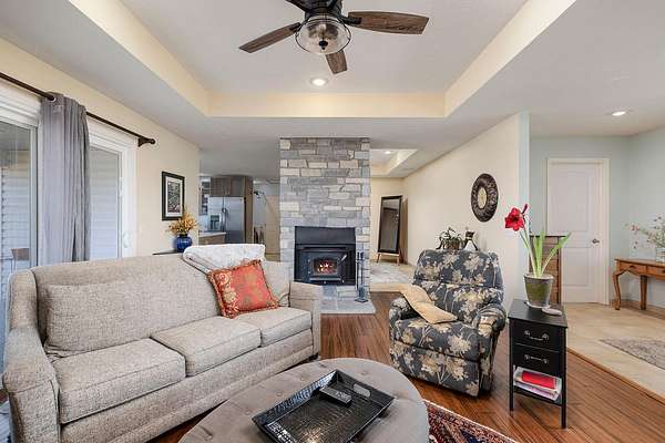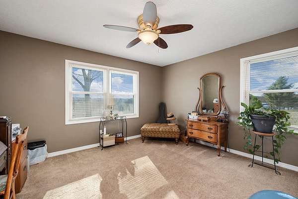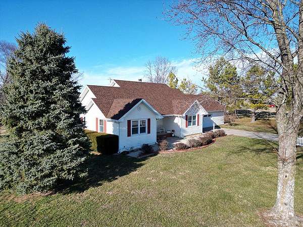This updated 1992-built home offers 1,564 sq ft of comfortable living space on a quiet 3.5-acre lot just south of Ozark. Located outside city limits, the property sits at the corner of Tennessee Road and Collins and offers a peaceful country setting with convenient access to town.Inside, the 3-bedroom, 2-bath home has been well cared for and thoughtfully updated. The kitchen features Corian solid-surface countertops and hickory cabinetry, while the living room includes bamboo flooring and a cozy wood-burning fireplace, creating a warm and inviting space. The primary bathroom offers a dual-sink vanity with custom wood cabinetry, solid-surface counters, and generous built-in storage. Neutral finishes throughout make the home move-in ready and easy to personalize.Outdoor living is a standout feature, with a spacious back deck The mostly open acreage, with a gentle slope toward the back, offers excellent potential for a hobby farm, gardening, or simply enjoying room to roam. Additional features include an oversized two-car garage with extra space for storage or a workshop, a whole house propane generator, private septic, and a shared well. Major updates include a brand-new Andersen front door, a new furnace in 2023, and a new roof installed in January 2026, featuring a 50-year shingle and a transferable 10-year labor warranty.The home is located in the Ozark School District and is just 8 minutes to Ozark and 12 minutes to the Hwy 60/65 interchange in Springfield--offering the ideal balance of country living and everyday convenience.Interactive Map: