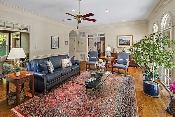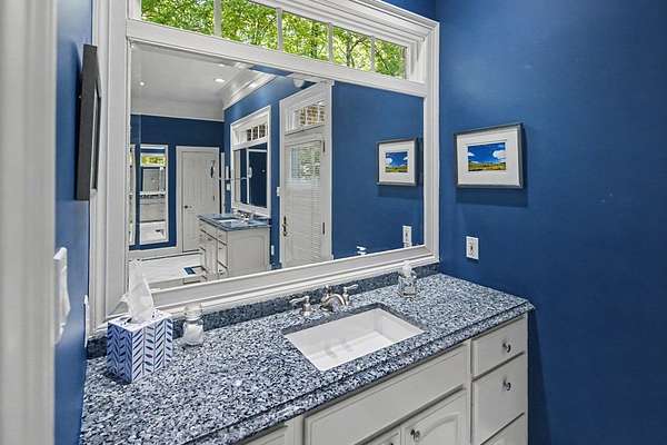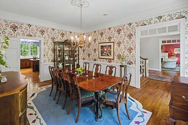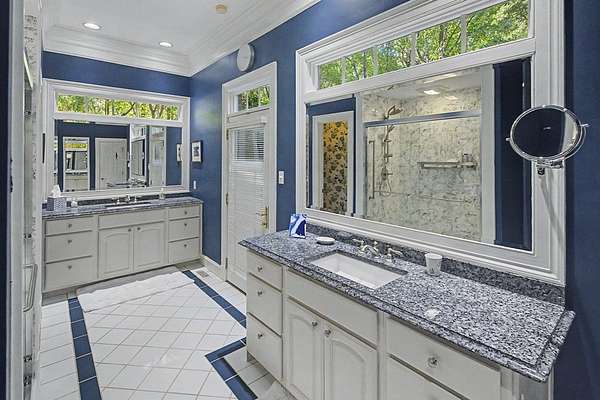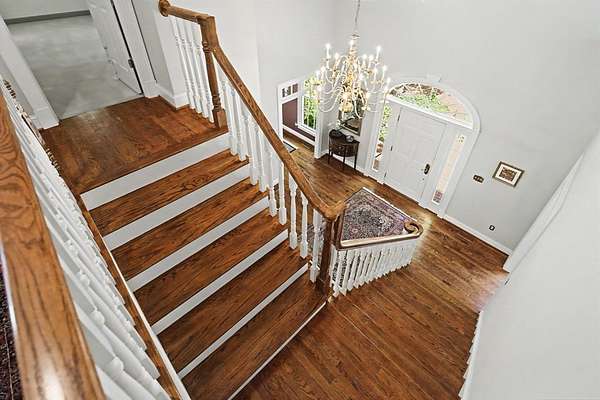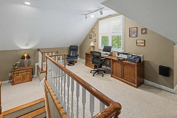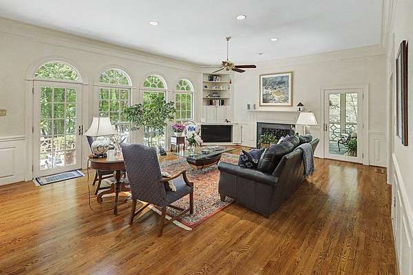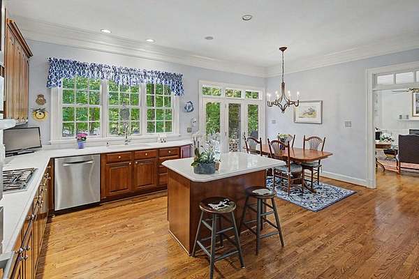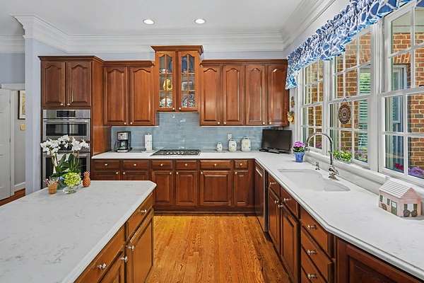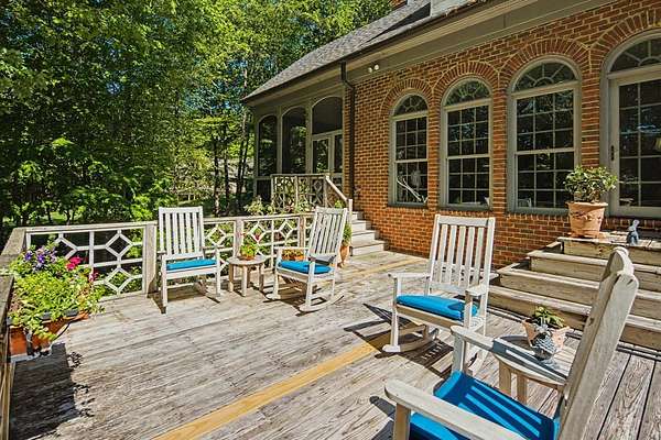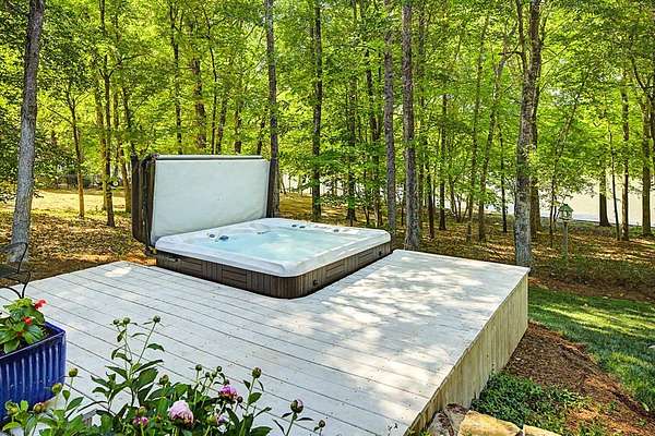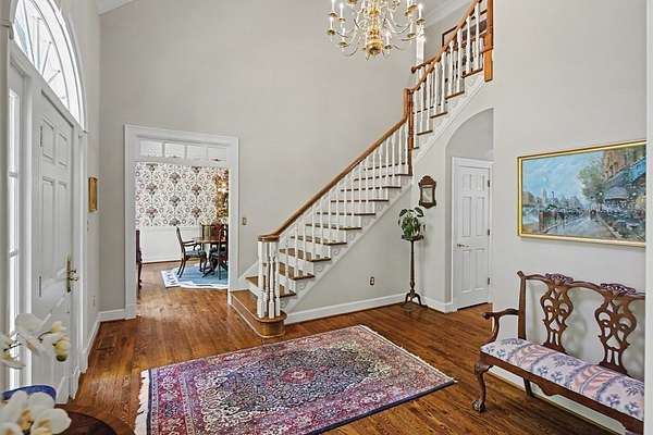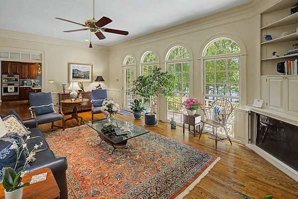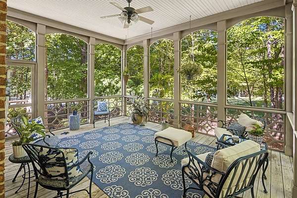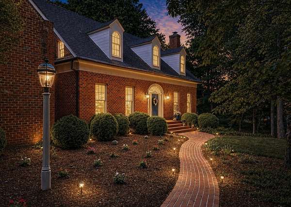 Timeless traditional brick home with low country charm, situated on 3.55 private waterfront acres. This beautifully designed property offers 4,552 sq ft of living space plus an unfinished basement. A grand 19-foot foyer welcomes you with a stunning three-tier solid brass chandelier. The home features 10-foot ceilings on the main level & 9-foot ceilings upstairs, creating an open & airy feel throughout. First-floor highlights include the foyer,a formal living room with a marble-surround gas-log fireplace & a formal dining room with a solid brass chandelier. a spacious primary suite with his & hers walk-in closets & an ensuite with his & hers vanities. Private exit to tiered deck leads to hot tub. Wood flooring runs throughout the first floor. There is raised-panel wainscoting in the family room & a slate surround wood-burning fireplace. Three elegant arched windows, surrounded by lovely molding & trim details,overlook the expansive deck & water. A gorgeous screened porch is just on the side of the family room. The spacious kitchen, updated in 2018, is equipped with a Bosch refrigerator, built-in oven & microwave, dishwasher, Thermador cooktop, cherry cabinetry, a built-in desk or bar area, & quartz countertop, updated backsplash. A 1/2 bath, large laundry room & back stairway complete the 1st floor. 2nd floor has 3 bedrooms & 2 baths, huge bonus room with 2 office spaces, & recreation area. Outdoor features include stone walls, an expansive deck ideal for entertaining, 2-car garage, & beautifully landscaped grounds with serene waterfront views. This property offers a perfect blend of elegance, comfort, and peaceful waterfront living. A must see, too much to describe in a little space! Get your pre-approval letter, your buyer agent & come see this custom-built beauty.