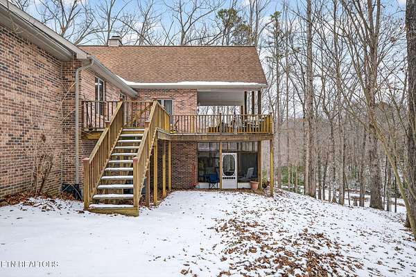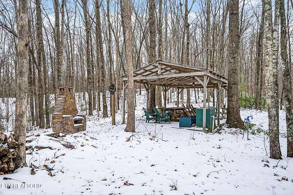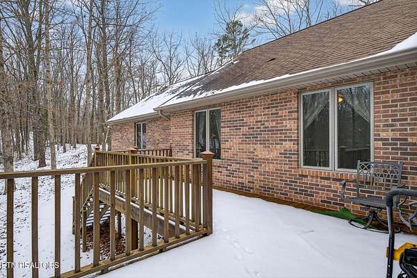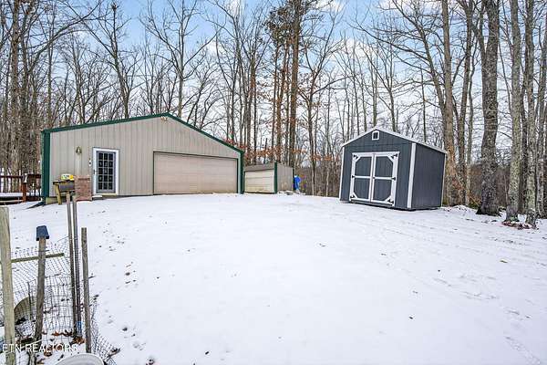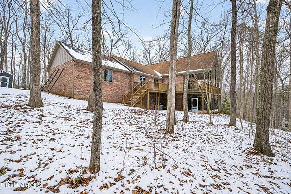 Nestled on over 7 acres of mostly wooded land, this beautifully constructed brick home at 108 6 Pearl Hines Rd., Jamestown, Tennessee offers exceptional privacy, space, and versatility in a serene natural setting. With 3,600 square feet of thoughtfully designed living space, this property is ideal for both comfortable everyday living and entertaining. The home features three generously sized bedrooms and three full bathrooms, along with an additional flex room perfectly suited for a home office, hobby room, or guest space. A charming loft area adds architectural interest and functional versatility, offering an inviting space for a reading nook, workspace, or relaxation area. At the heart of the home, a double-sided fireplace serves as a stunning focal point, creating warmth and ambiance shared between the living room and the spacious kitchen. This open, connected layout enhances both functionality and flow, making it ideal for gathering with family and guests. The property also includes a full walkout basement, partially finished and offering endless possibilities for expansion, recreation, or storage. An attached two-car garage provides everyday convenience, while a detached two-car garage includes a dedicated office and workshop, making it perfect for remote work, creative pursuits, or business use. Outdoors, the setting is truly exceptional. A beautiful pond anchors the landscape and enhances the peaceful surroundings. Additional features include a woodshed, lawnmower shed, and an impressive entertaining pavilion complete with a stone fireplace and built-in grill, offering a remarkable space for hosting gatherings in all seasons. This unique property blends privacy, natural beauty, and functional design, offering estate-style living in a tranquil Tennessee setting just minutes from Jamestown. A rare opportunity to own a versatile and well-appointed home surrounded by nature.
