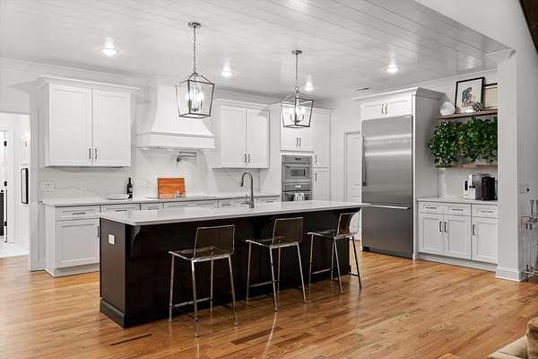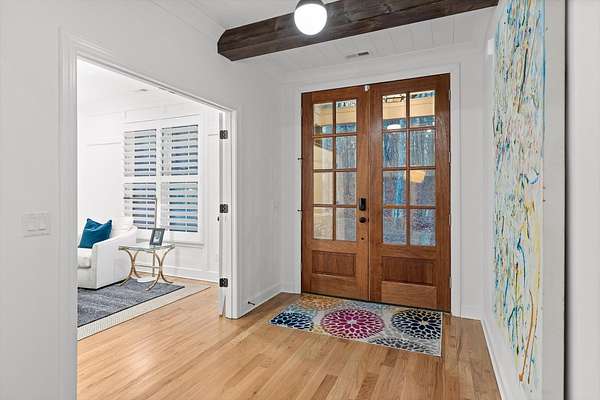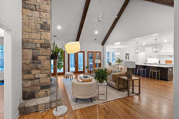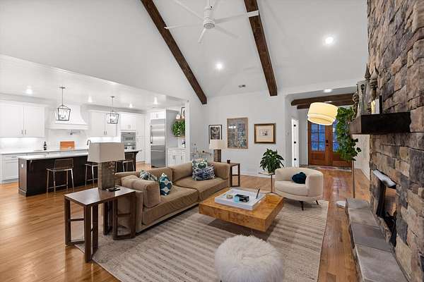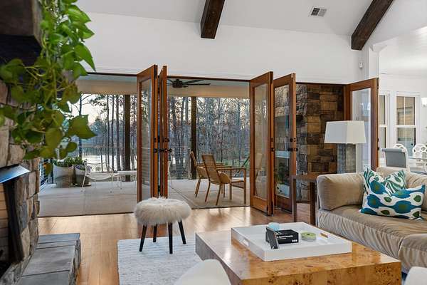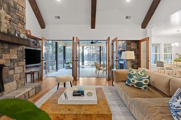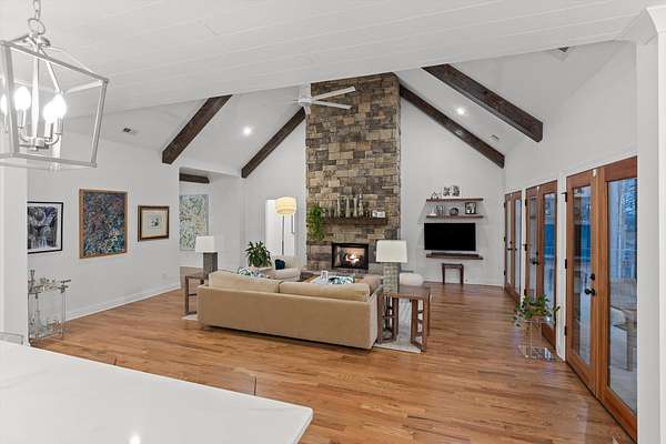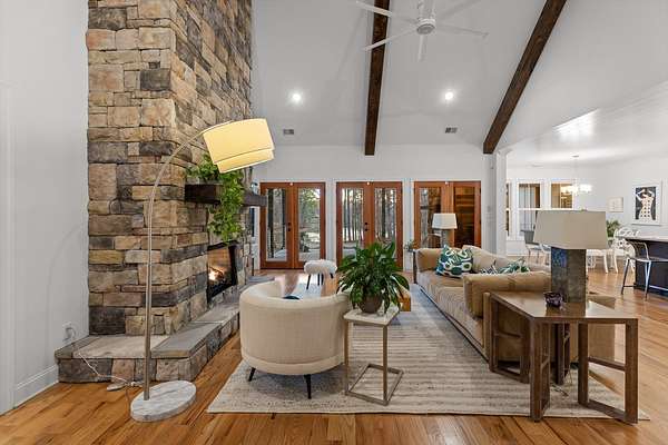 Discover one of Ooltewah's best-kept secrets at 10866 Lost Lake Circle ... a private, gated retreat offering peaceful waterfront living on 5.04 beautiful acres. Tucked away in a serene setting that feels far from everything yet remains remarkably convenient to town, this custom home offers the perfect balance of seclusion, luxury, and everyday practicality. Inside, the current owners have thoughtfully enhanced the home with fresh interior paint throughout, and professionally refinished hardwood floors, giving the entire home a crisp, refreshed feel from the moment you enter. An immediate view straight through to the water sets the tone, highlighting the natural beauty surrounding the property. The main level features an open-concept living space centered around a soaring vaulted ceiling and a striking floor-to-ceiling stone fireplace. The chef's kitchen is outfitted with high-end Thermador appliances, built-in oven, an 84-inch built-in refrigerator, induction cooktop with pot filler, custom pull-outs, and an oversized walk-in pantry-designed to impress both the home chef and the entertainer. A dedicated office, two spacious guest bedrooms with walk-in closets and a Jack-and-Jill bath, and a dining area overlooking the water round out the thoughtful main-level layout. The primary suite is a peaceful haven with water views, a vaulted ceiling, and private access to the covered back porch. The luxurious ensuite includes heated tile floors, a freestanding soaking tub, a large walk-in tile shower, and a generous walk-in closet connecting directly to the laundry room for added convenience. Upstairs, a versatile bonus room with its own full bath and walk-in closet offers ideal space for guests, recreation, or a private retreat. Outdoors, enjoy 204 feet of level water frontage on the 10 acre private pond, a custom Connect-A-Dock, and a scenic backdrop ideal for paddle-boarding, fishing, or relaxing by the water. The expansive covered back porch includes custom steel and stainless railings, concrete-on-steel flooring, a gas fireplace, grill-ready gas line, and custom metal stepsdesigned for year-round enjoyment. Mature woods across the road offer peaceful trails where deer and turkeys are often spotted. Additional features include custom window treatments, UV protection film on south windows, tankless water heater with recirculating pump, high-efficiency HVAC, LED lighting, invisible pet fencing, AT&T fiber internet, and a walk-in full encapsulated crawl space (installed by the current owners) for extra storage. With unparalleled privacy, premium updates, stunning water frontage, and surprising convenience to town, this exceptional property is truly a rare find. Schedule your private tour today.