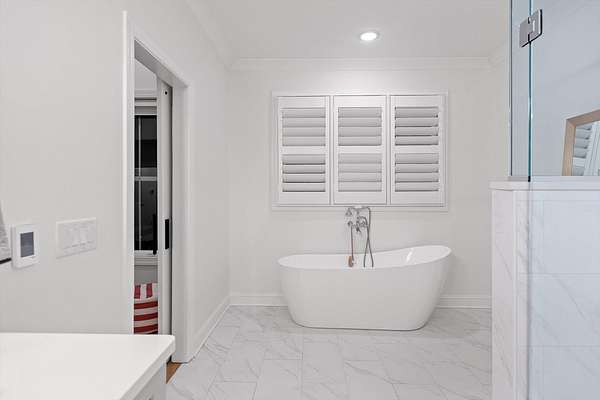 - Beamed Ceilings, Ceiling Fan(s), Connected Shared Bathroom, Crown Molding, Double Shower, Double Vanity, Eat-In Kitchen, En Suite, Entrance Foyer, High Ceilings, Kitchen Island, Pantry, Primary Downstairs, Recessed Lighting, Separate Dining Room, Separate Shower, Soaking Tub, Tub/Shower Combo, Walk-In Closet(s)