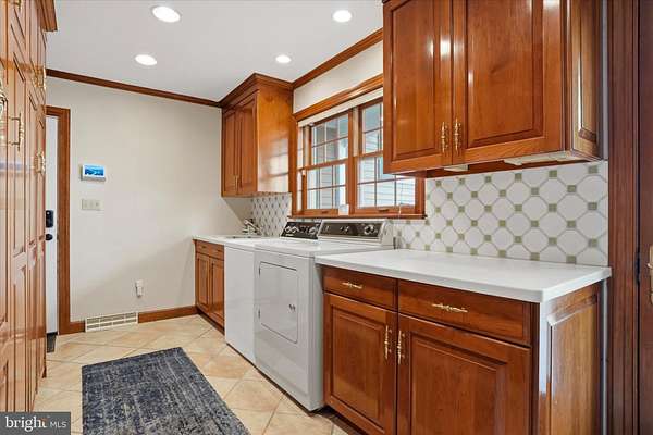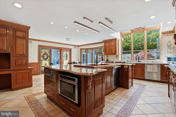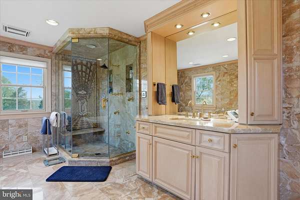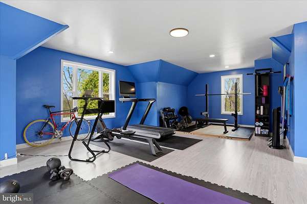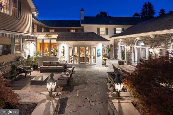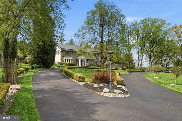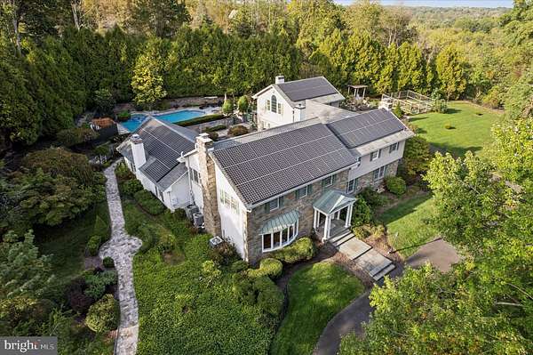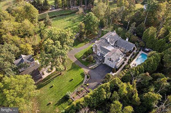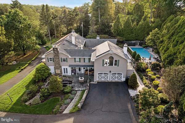 Set behind newly upgraded gates with an advanced security camera system, this exceptional estate offers a rare combination of privacy, sophistication, and modern convenience. Nestled on 3.56 meticulously manicured, park-like acres, the 6,010-square-foot custom residence seamlessly blends timeless European character with today's most desirable upgrades. A striking stone exterior introduces the level of craftsmanship found throughout, while a dramatic two-story foyer welcomes you into a home defined by scale, elegance, and warmth. Freshly painted interiors enhance the light-filled main living spaces, including a grand 17 x 30 formal living room and an impressive two-story great room featuring a built-in cherry wet bar, projector, and drop-down screen-perfect for entertaining on any scale. Rich hardwood floors, hand-crafted moldings, designer finishes, and four beautifully restored and serviced fireplaces add depth and refinement throughout. French doors lead to a stunning stone and slate courtyard, creating a seamless indoor-outdoor living experience. The chef's kitchen is designed to impress, anchored by a massive island with Shivakashi granite, Rutt custom cabinetry, and a full suite of top-tier appliances, including Gaggenau, Viking, Asko, and Sub-Zero. A formal dining room and an elegant library with custom-built cherry cabinetry complete the main level. The private primary suite wing serves as a luxurious retreat, offering a spacious bedroom, a separate sitting room with its own deck overlooking the pool and grounds, a dressing room, and a spa-inspired bath with heated floors and an expansive double steam shower. A newly installed wood stove adds warmth and ambiance to the suite. Upstairs, three additional bedrooms and a full bath provide comfortable accommodations for family and guests. Outdoors, the property continues to impress with a newly heated, custom-designed in-ground pool, enhanced by a new propane heater (2024), surrounded by mature landscaping, fountains, and multiple bluestone and slate patios-ideal for both relaxation and entertaining. Outdoor pool house includes a dedicated changing room and convenient half bath keeps wet traffic completely out of the main home. This home is equally distinguished by its extensive list of modern upgrades and efficiency features, including a high-performance solar energy system with 96 panels and two Tesla Powerwalls, offering energy storage and the ability to return power to the grid. A 400-amp electrical system with circuit breaker overload protection, four-zone heating and cooling, a new first-floor HVAC unit (2023), and five new Ecobee thermostats (2025) ensure optimal comfort and efficiency. Additional improvements include a new hot water heater (2022), new well tank (2023), and reverse osmosis system in the kitchen (2022).Enjoy high-quality water throughout the home with a whole-house filtration system installed in May 2025, complete with sediment filtration, multiple carbon tanks, UV light purification, and a water softener. Technology and security have been thoughtfully enhanced with a fully upgraded ADT system and whole-home wired ethernet servicing the office, great room, den, playroom, and eight wired wireless access points, including outdoor coverage extending to the pool area. Additional recent updates include a new front gate with operator and control system, new roof over the kitchen (2025), and upgraded RainBird irrigation controls (2023). Completing the property is an attached two-car garage with electric vehicle charging stations and a separate carriage house featuring a three-bay garage and a finished, climate-controlled loft currently used as a private gym. Impeccably maintained and truly turnkey, this extraordinary property offers the ultimate in privacy and luxury, all within close proximity to New Hope, with convenient access to Philadelphia, Princeton, and rail service to New York City.