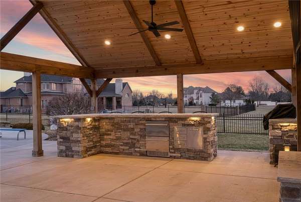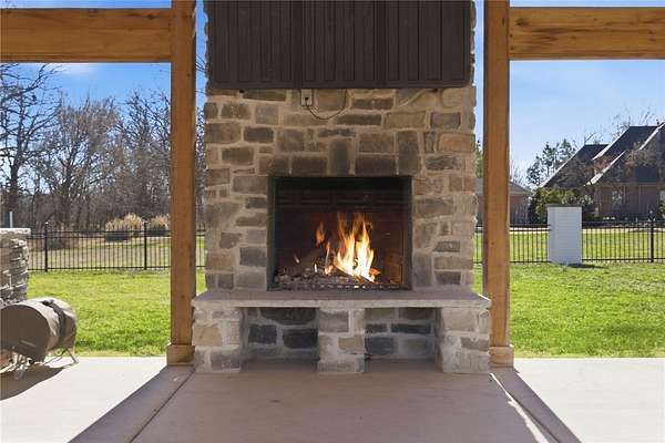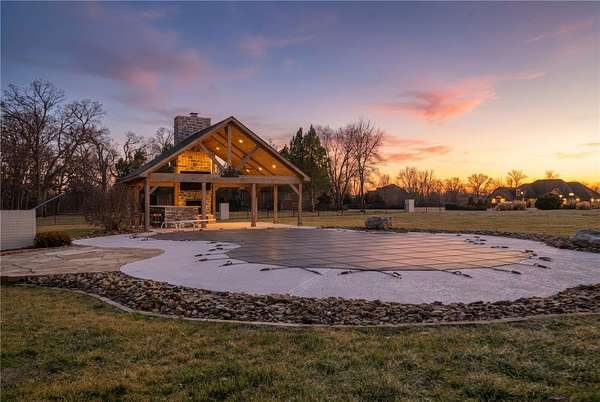 Experience resort-style living in this stunning estate! Since 2023, this property has been elevated with high-end upgrades designed for ultimate entertaining. The backyard is now a private oasis featuring a newly added outdoor kitchen housed under a grand detached covered pavilion, perfectly positioned next to the pool. Enjoy the outdoors year-round in the new 3-season room, or relax on the upgraded balcony and porch, now featuring premium composite decking for a beautiful, maintenance-free finish. Inside, the home shines with a gourmet kitchen, 3 cozy fireplaces, and a primary retreat on the main level. The upper floor is an entertainer's dream with a massive theater/game room and wet bar. Situated on nearly 3 lush acres with a 4-car garage and a dedicated dog wash station, this home blends grand architectural scale with modern luxury. Pool Table in game room & Outdoor Tv under Pavilion may ConveyPreferred Lender Incentives Available!