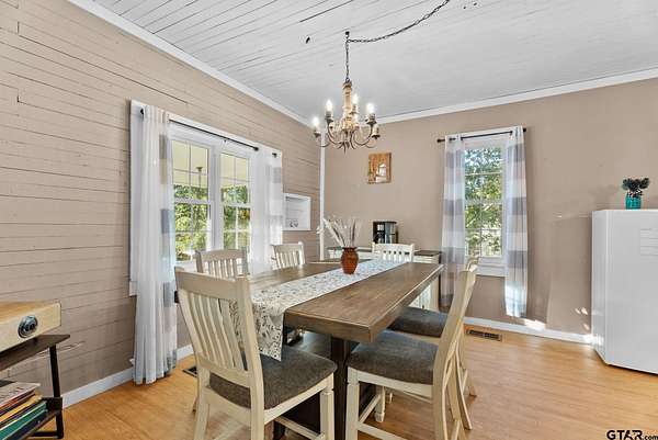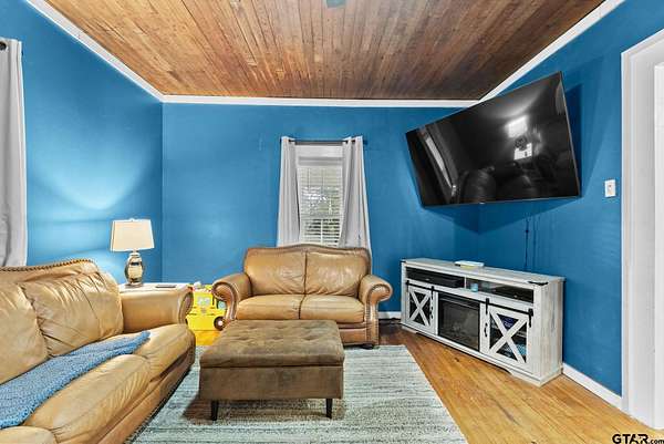 Step into East Texas history with this one-of-a-kind 1908 farmhouse, offering over 2,600 sq ft of character, comfort, and wide-open space. Set on two beautiful acres with partial tree coverage and a creek near the back of the property, this 2-story gem blends thoughtful modern updates from the last few years (roof, windows and upstairs central AC system) with the original heart of the home still shining through. Inside, you'll find a surprisingly spacious layout featuring 5 bedrooms, 2 bathrooms and an upstairs flex space, with the primary suite conveniently located downstairs. The living room is cozy and inviting, filled with natural light, and the large kitchen and dining area make hosting easy, complete with an eat-in bar, plenty of room to gather, and all the charm you'd expect from a 1908 build lovingly cared for over the years. Step outside and enjoy the peace of country living from the covered front and back porches, perfect for morning coffee or unwinding at the end of the day. The property also includes a metal workshop (or detached garage), an incredible (and original!) wooden barn, an above-ground pool, and a hot tub - your own little getaway without ever leaving home. If you're looking for a home with soul, space, and something truly unique while also being conveniently located near town, this is the one!