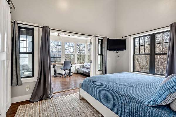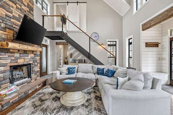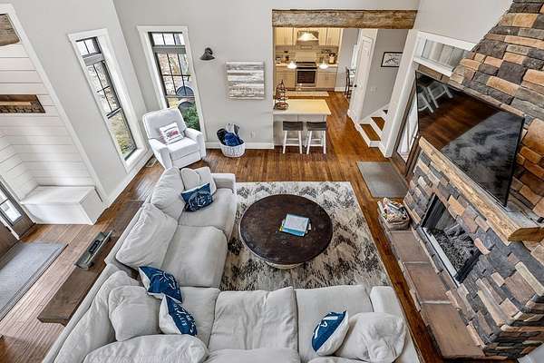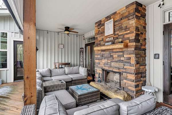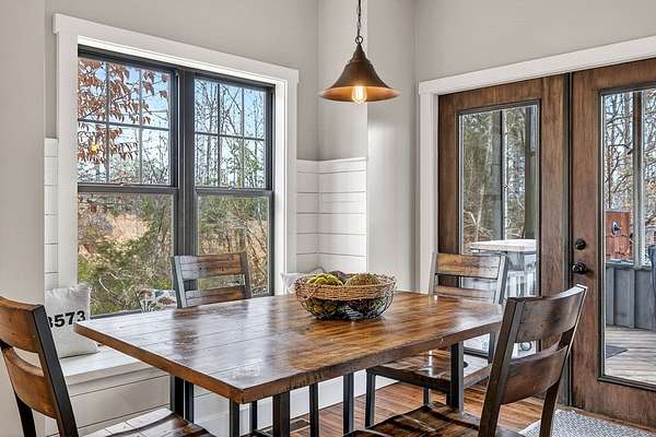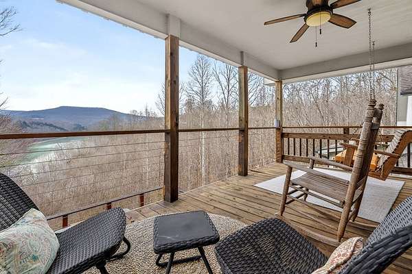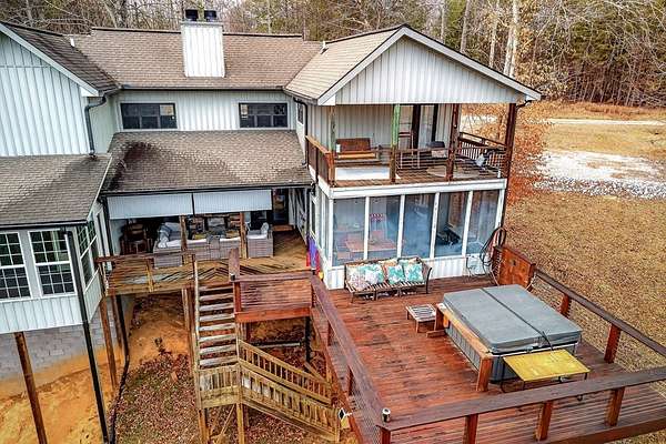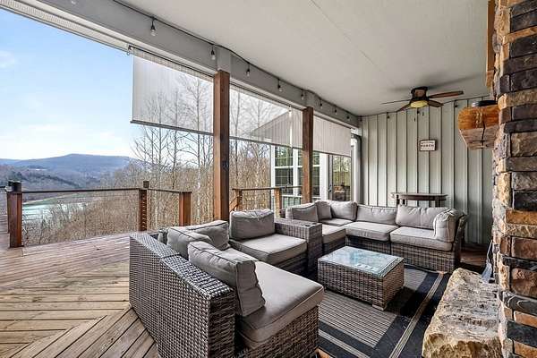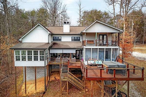 This home overlooks The Beautiful Dale Hollow Lake. Coming to you fully furnished, it is already successfully set up on short term rental programs. This home boasts three strategically placed bedrooms, and two bathrooms. Centered in the home is the living room featuring a fireplace and soaring ceilings! To the right is an aesthetic staircase leading to a loft style bedroom. Another bedroom above the breakfast nook boasts its own covered balcony featuring its own lake views. Located on the main level, is the master suite with soaring ceilings and an office/sunroom with its own exterior exit leading out to the back deck. This outdoor space has its own covered deck with a fireplace, hot tub, outdoor shower and TV-perfect for soaking in views or entertaining guests. The views are breathtaking and the possibilities are endless with this investment. Located three miles from HWY 111 and Less than 10 minutes from Sunset Marina-this property has views without sacrificing a convenient location.