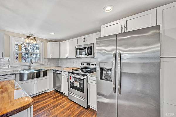 Own a piece of Bedford County history! This adorable, affordable renovated schoolhouse blends historic charm with modern peace of mind. Completely stripped to the studs and rebuilt with quality craftsmanship, the home features all-new insulation, plumbing, wiring, lighting, roof, flooring, a 2-zone HVAC system, well pump, pressure tank, and filtration system. All three bathrooms are fully renovated, and the kitchen is entirely new with updated cabinetry and appliances. Exterior improvements include a new front porch, side porch decking, concrete sidewalk, privacy fence, new gravel driveway, and a septic system that has been pumped and inspected. A preserved school bell adds a charming nod to the property's roots. Seller will assist with closing costs with an acceptable offer!