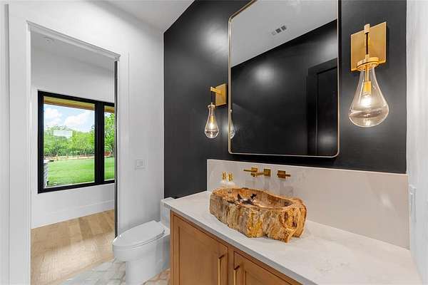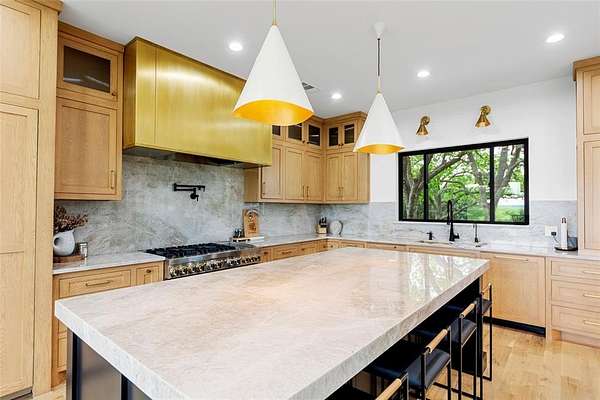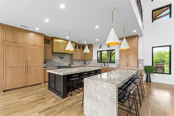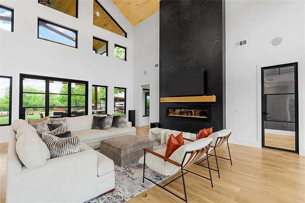 Arrive through the grand gated entry, surrounded by mature trees, lush professional landscaping, and a covered front porch with sophisticated lighting. Inside, you'll be captivated by soaring ceilings, an open-concept layout, and exquisite custom design details throughout -- from the chef's kitchen with top-of-the-line Gen Air Professional appliances, dual dishwashers, a built-in refrigerator freezer, and a dedicated wine room, to the stunning finishes and thoughtful craftsmanship in every space.
