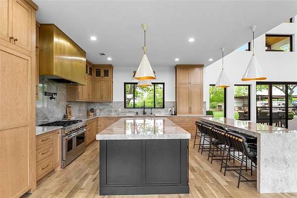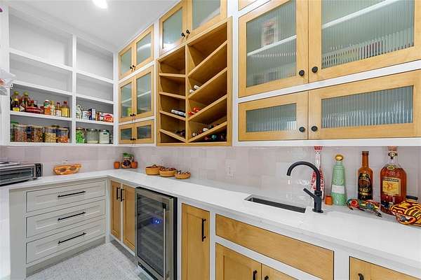 - Built-In Features, Built-In Wine Cooler, Cathedral Ceiling(s), Chandelier, Decorative Lighting, Double Vanity, Dry Bar, Eat-In Kitchen, Kitchen Island, Open Floorplan, Paneling, Pantry, Second Primary Bedroom, Smart Home System, Sound System Wiring, Vaulted Ceiling(s), Wainscoting, Walk-In Closet(s), Wet Bar, Wired For Data