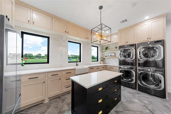 The showstopping primary suite is a private sanctuary, boasting heated bathroom floors, custom walk-in closets, a sparkling chandelier, and a spa-inspired bath designed for pure relaxation. The property is pool-ready, with plumbing and electrical already in place, and also includes RV hookups and smart-home technology throughout.