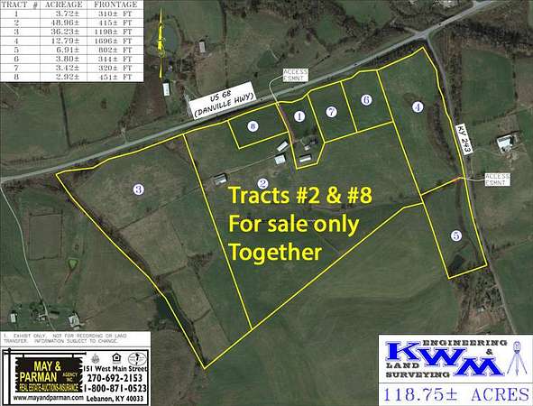 Est $3,304/mo51.88 acres m/l with 3 barns, one being like new tool shed with a shop. Farm has 866ft of frontage on US 68 (Danville Hwy). Super nice laying well improved tract with stunning home site with breath taking views. Outstanding horse or cattle farm mostly in fence. Located 10880 Danville Hwy. Gravel Switch, Ky.