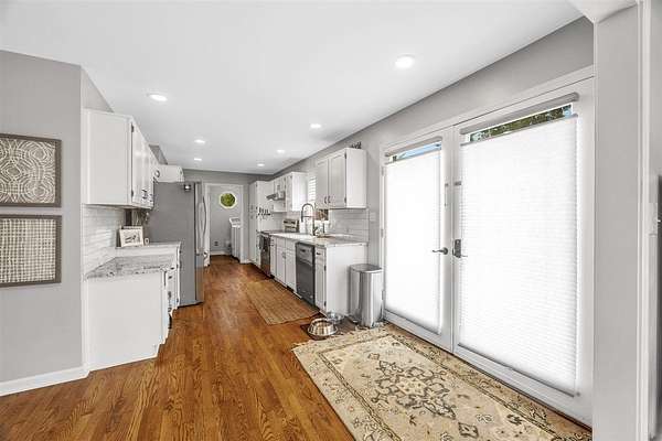 If you are looking for a private laid back, no HOA, property with quick access to town, this house is for you. It comes with a 24' X 40' metal detached shop with insulation and woodburning stove. It has ample parking to store all of your toys or equipment. Enjoy the outdoors and watch plenty of wildlife at your back step. Listen to the waterfall of a large koi pond with many koi fish (it had a large hatch this spring with lots of young ones). The basement (poured concrete walls) is partially finished with a large recroom, a bonus room that could be used as a 4th bedroom, and a full bathroom. New roof in July 2018. New Geothermal HVAC unit and interior remodel done in 2021. If you are looking for a home with low utility bills, this is the home for you with solar panels and Geothermal HVAC. Over half of the land is wooded with maintained trails for walking/mountain biking.