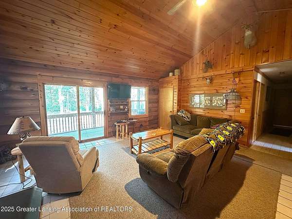Welcome home to 10886 Gillow, SE, Fife Lake Michigan. This Beaver Log home was constructed in 1990 and features frontage on the popular trout stream, Cannon Creek. This 4-bedroom, 3 full bathroom Rustic Getaway features high ceilings, a Great Room with a Northwood-wood stove, Anderson windows, and a glass sliding door out to the huge deck on the Stream side complete with a screen porch. There are two bedrooms on the main level, a large bedroom upstairs and a bedroom on the lower walk-out level. Beaver Log Homes used 10 inch-full logs which are double tung/grove, and don't require chinking. Gillow Rd is a private road, and the home sits far off the road with a gravel drive. -----> More... The very Private 1.5-acre parcel is close to state land for great hunting opportunities, snowmobiling, and enjoying Northern Michigan at its best. The extra tall RV storage garage will remain. The Owner will entertain offers for some of the personal property which can be purchased outside of the purchase agreement. Don't miss the cozy Trappers Bunk House and fun Water Wheel just off the creek. Contact List Realtor for showing details...