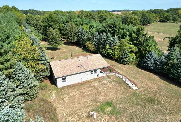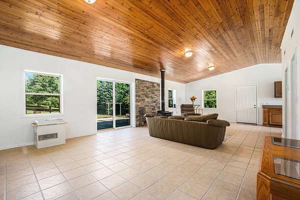You'll fall in love with this cozy ranch the moment you walk in. Vaulted wood ceilings create a warm, open feel, and the wood stove plus propane furnace keep you comfortable all winter. Enjoy beautiful views from both the large covered front porch and the private back patio. Sitting on 2.5+ acres, this peaceful property offers plenty of space to relax and enjoy nature. The large pole building features electric, propane heat and concrete floors-perfect for a workshop, extra storage or garage space. Welcome Home!