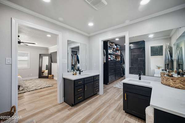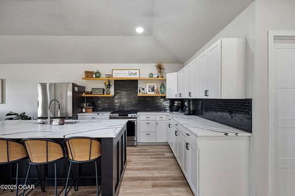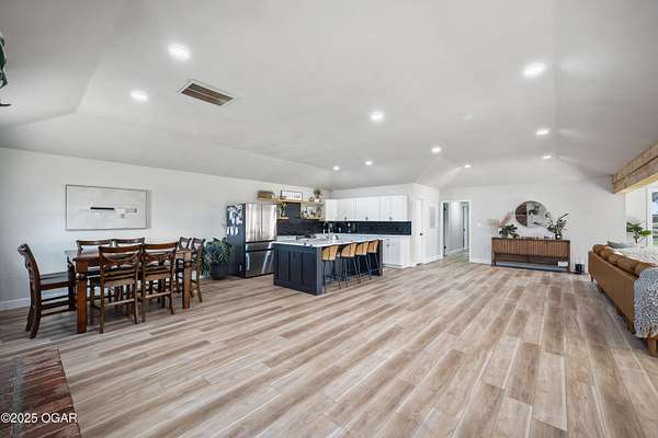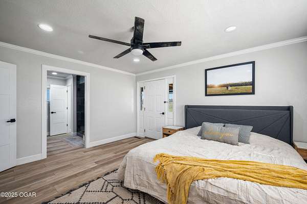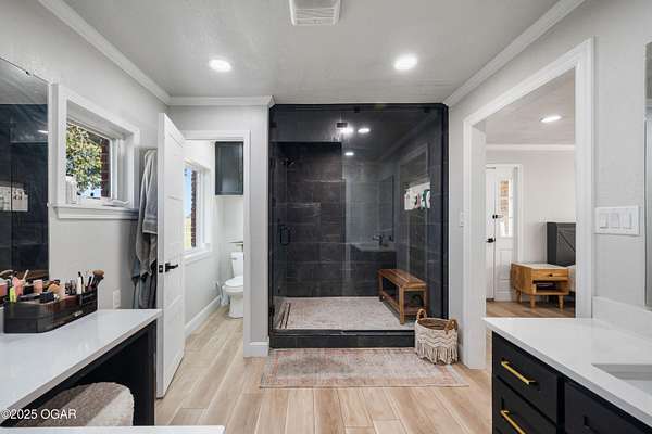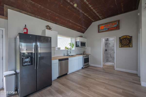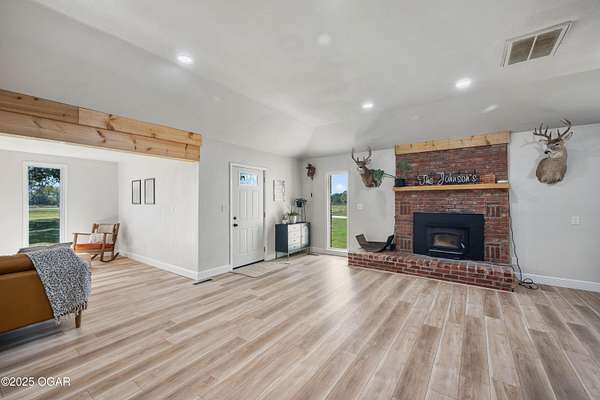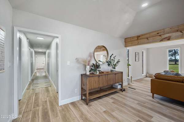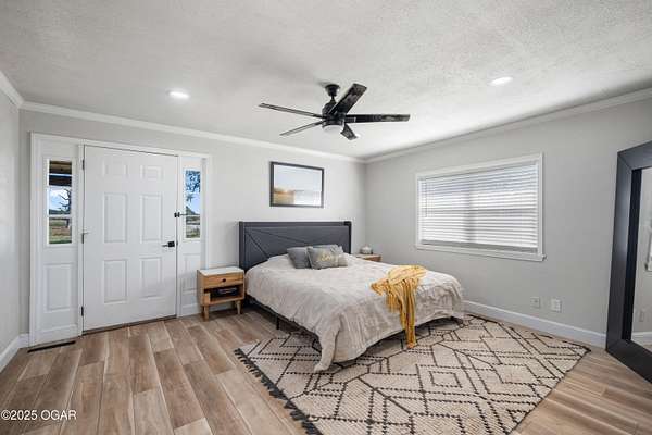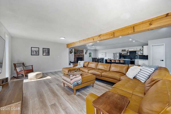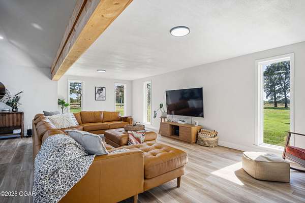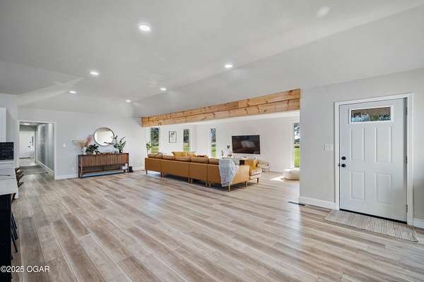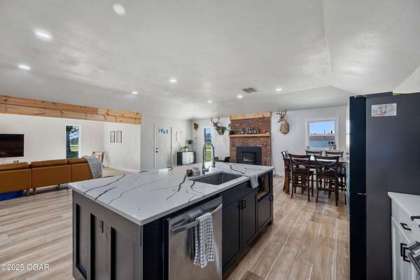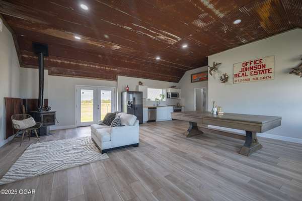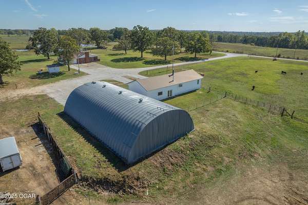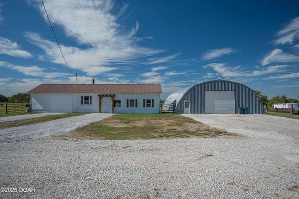 Welcome to your own slice of country paradise! Sitting on 7.5 beautiful acres, this incredible property offers space, versatility, and views you'll fall in love with. The home features a spacious open-concept living, dining, and kitchen area-perfect for gathering and entertaining. The kitchen is a showstopper with a massive island, quartz countertops, and rough-sawn pine floating shelves that add warmth and charm. Between the garage and laundry room, you'll find a mudroom made for real life-ideal for storage, animals, canning, or any hobby you love. The primary suite is a true retreat with a room-sized walk-in closet, dual vanities, a relaxing steam shower, and a private deck overlooking a pond. Outside, enjoy a giant front yard shaded by mature trees, two separately fenced pastures, a 4,000 sq. ft. Quonset, and an additional shop building-perfect for equipment, projects, or business use. Soak in the breathtaking sunrises from the back deck and unwind with stunning sunsets from the front porch. With separate living quarters that could serve as guest space, an Airbnb, or a home office, the possibilities are endless. This one-of-a-kind property truly has it all-come see it for yourself and imagine the life you can build here. Owner/agent