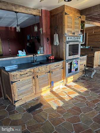 - Built-Ins, Ceiling Fan(s), Combination Kitchen/Dining, Primary Bath(s), Skylight(s), Traditional Floor Plan, Wood Floors, Wood Stove