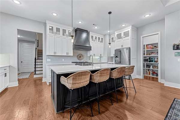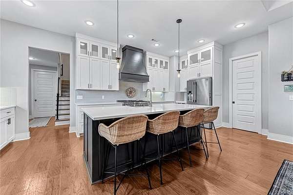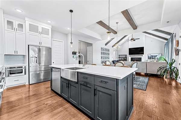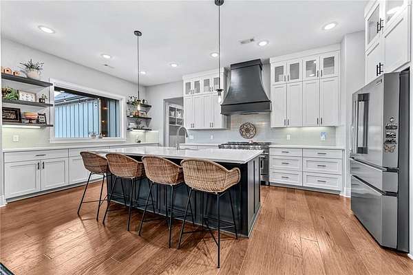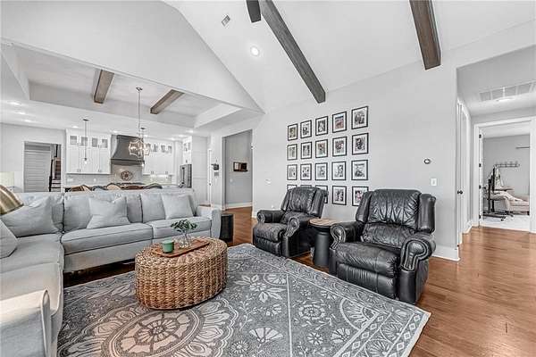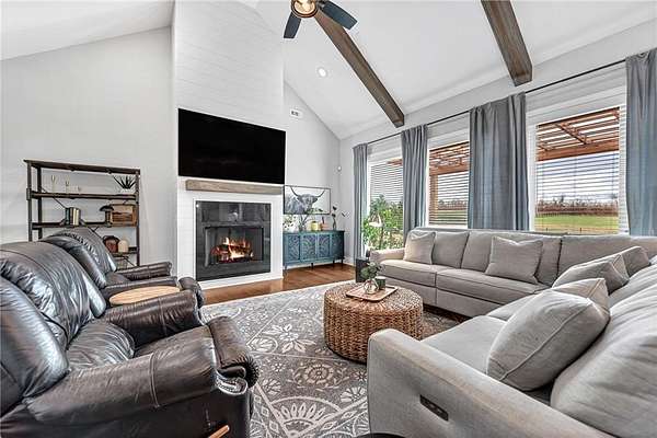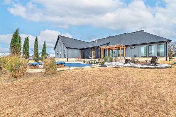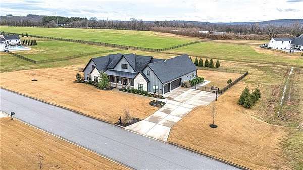 Experience modern farmhouse living at its finest in this stunning home set on 2.01 beautifully landscaped acres. This residence offers true main-level living with an inviting open floor plan, wood floors throughout, and high-end finishes at every turn. The main level features 5 spacious bedrooms and 4 full baths, while the only space on the second level is a generous bonus room with its own full bath provides flexible space--perfect as a 6th bedroom, guest suite, media room, or play area. A dedicated office makes working from home effortless. The gourmet kitchen is equipped with high-end appliances and overlooks the bright, open living and dining areas--ideal for entertaining. Step outside to your private retreat complete with a sparkling swimming pool w/ heated spa, screened-in porch, and a cozy fire pit surrounded by mature landscaping that enhances the beautiful setting. A rare combination of luxury, livability, and outdoor enjoyment--this modern farmhouse is truly one of a kind.
