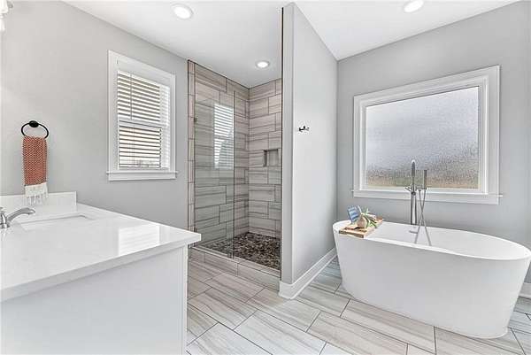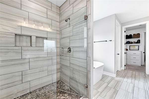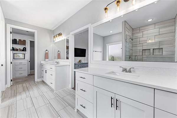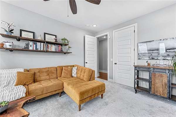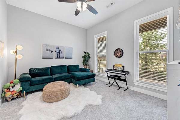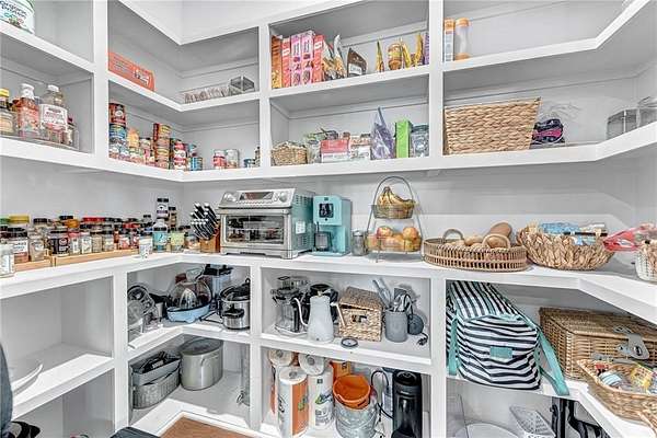 - Attic Storage, Blinds, Built-Ins, Cathedral Ceiling, Ceiling Fans, Eat-in-Kitchen, Ice Maker Connection, Pantry, Programmable Thermostat, Quartz Counters, Smoke Detector, Split Floor Plan, Walk-In Closets