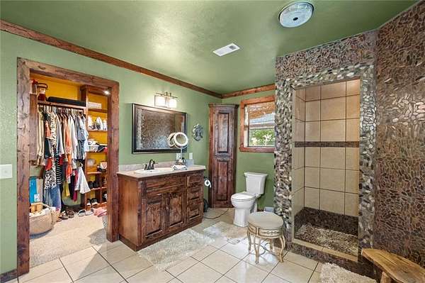- Cathedral Ceiling, Eat-in-Kitchen, Granite Counters, Smoke Detector, Walk-In Closets, Woodstove