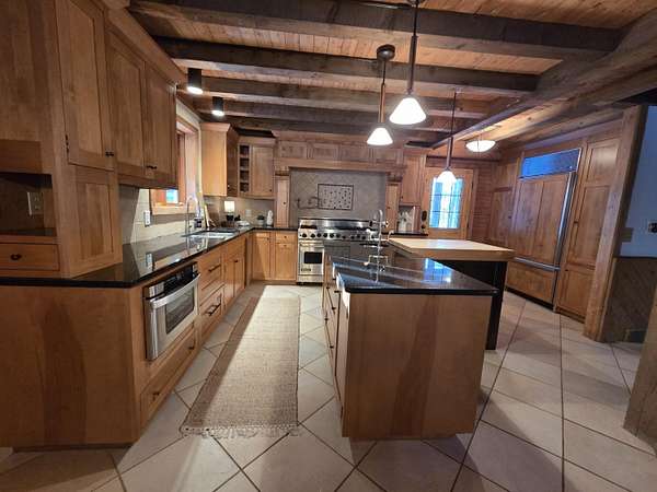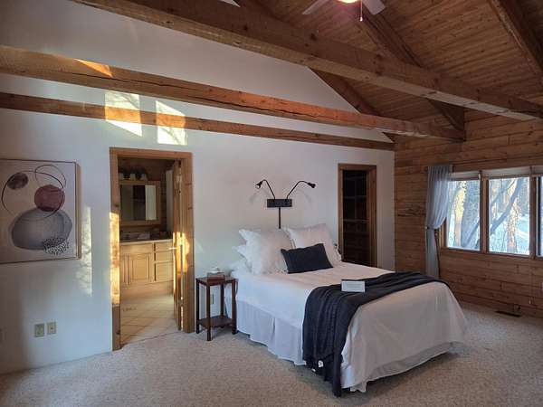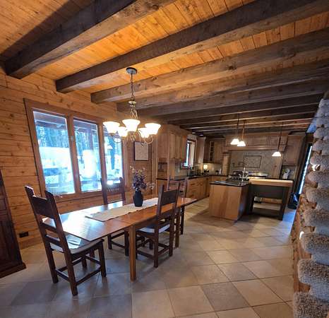This true log home on 5.5 acres offers exceptional peace and tranquility, complemented by rich, deep wood tones throughout. The expansive gourmet-style kitchen features updated wood cabinetry, quartz countertops, a full stainless steel appliance package, and a spacious dining area perfect for gatherings. The inviting living room showcases a beautiful stone fireplace and custom built-in, creating warmth and ambiance year-round. The main-floor primary suite includes a walk-in closet and a private full bath for added comfort and convenience. Upstairs, you'll find two generously sized bedrooms and a large full bath complete with a soaking tub and separate shower. The finished lower level offers a cozy family room with fireplace, an additional full bath, a guest room or office, and a generous laundry and storage area. The detached two-stall garage (built in 2011) includes a separate workshop and an impressive upper-level loft with private entrance-featuring an equipped kitchen, full bath, and studio-style living/bedroom spaceideal for guests, extended family, or potential rental income. Don't miss this beautiful property located in the award-winning Plainwell School District.