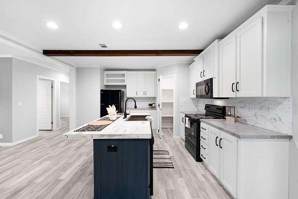 One of the five lots already features a stunning 2023 Palm Harbor home -- a turnkey-ready modern farmhouse that boasts 3 bedrooms, 2 bathrooms, 1,440 square feet of open-concept living space, and standout details like a large kitchen island, exposed beams, stainless steel farm sink, walk-in pantry and closets, and a 72" spa-style shower with body sprayers. Enjoy a private setting, a front covered entry, and a spacious back deck perfect for entertaining.