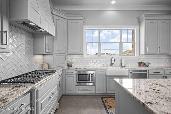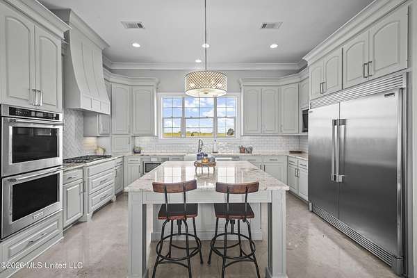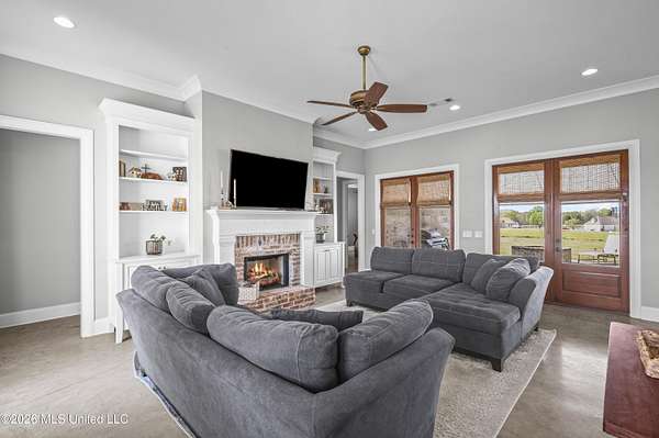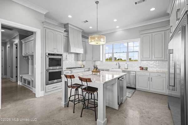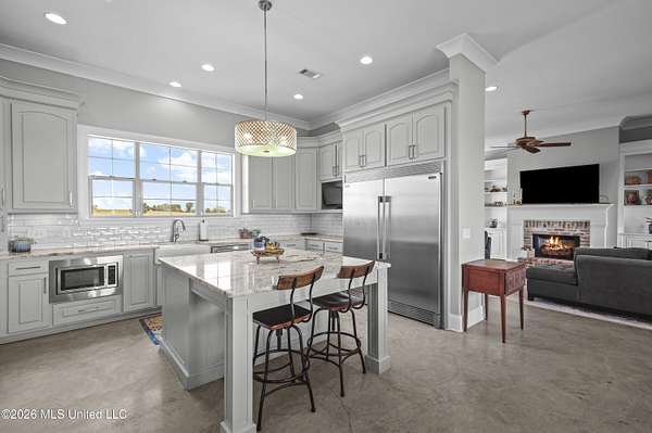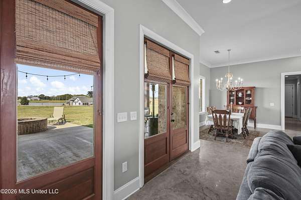 Andover Living at Its Finest | 5 Bedrooms - 2.25 Acres - 4-Car Garage Tucked away on 2.25 acres in Andover, this custom-built one level home offers the space, privacy, and thoughtful design today's buyers are looking for. From the moment you arrive, the double iron front doors set the tone for what's inside--timeless finishes, natural light, and a layout designed for both everyday living and effortless entertaining. At the heart of the home, the open living, dining, and kitchen spaces come together beautifully. A striking floor-to-ceiling fireplace with built-ins anchors the living room, while a wall of windows across the back invites the outdoors in. The kitchen features an oversized island, Sub-Zero refrigeration, double ovens, gas cooktop, ice maker, granite countertops, and abundant custom cabinetry--all complemented by a spacious walk-in pantry. The primary suite is privately positioned offering a spa-like bath with a soaking tub, separate shower, dual vanities, and generous walk-in closets. Just steps away, the laundry room adds convenience with extra storage, workspace, and a utility sink. A true triple-split floor plan provides flexibility and privacy, with well-appointed guest rooms and baths. Function meets style off the 4-car garage, where you'll find a drop zone with built-ins and a wet bar with beverage cooler. Step outside to the large covered porch with a firepit, overlooking wide open green space. If you've been searching for space, quality, and a setting that feels like home the moment you arrive--this one delivers. Zoned Madison Middle and Madison Central schools. Minutes from Madison and Flora. Miles from ordinary.