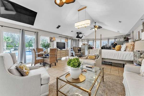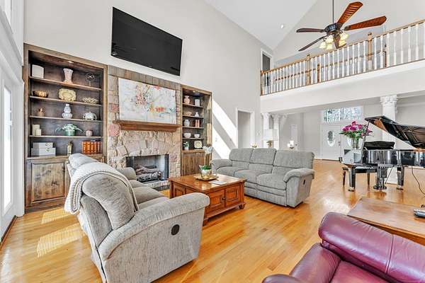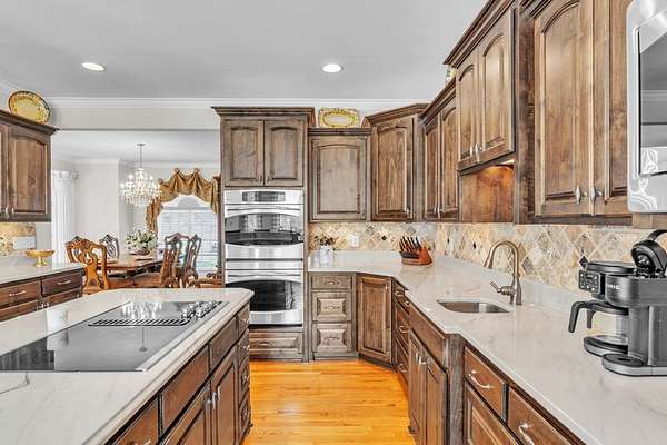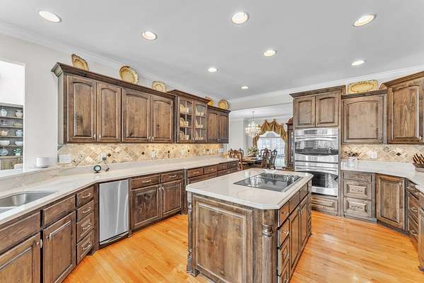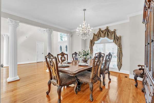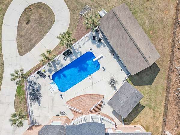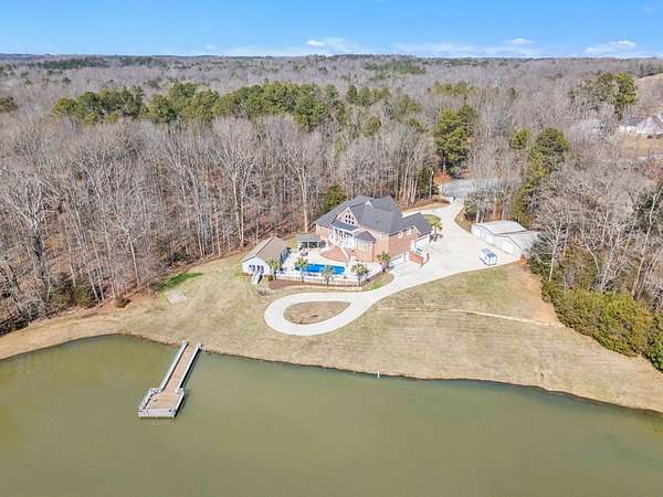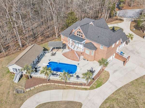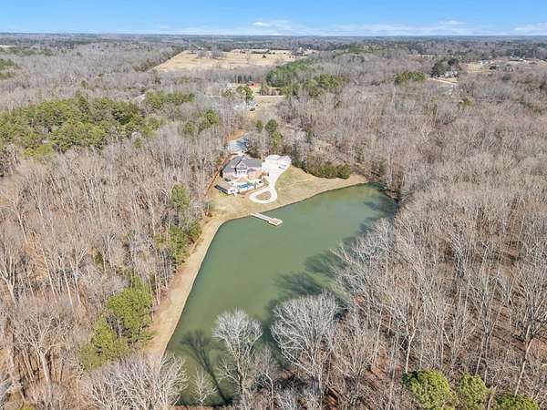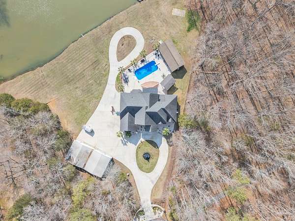 Located in sought-after Dalewood Estates, where horses are welcome, this custom-built Southern estate offers gated privacy, luxury finishes, and exceptional outdoor living on 7.41 acres. A keypad entry and front fountain welcome you to this all-brick home with stucco accents, grand columned front porch, and two circular concrete drives leading to attached and detached garages. The property features an approximately 2-acre private pond and an 18x36 in-ground swimming pool, creating a true resort-style setting. Extensive concrete surrounds the home and pool area, with brick steps and iron handrails leading to outdoor entertaining spaces. Inside, hardwood floors, cathedral ceilings, and a grand staircase with balcony create an impressive first impression. The main living room features a gas fireplace with decorative stacked stone, custom mantle and built-ins, and a wall of windows overlooking the pool and pond. The formal dining room is accented by an elegant chandelier. The chef-inspired kitchen offers abundant custom cabinetry, quartz countertops, a large island with cooktop, breakfast bar seating for five, prep sink, double wall ovens, microwave, dishwasher, trash compactor, refrigerator, and decorative backsplash. A bright breakfast area provides panoramic views of the property. Additional spaces include a butler's pantry, walk-in pantry, and spacious laundry room with built-in cabinetry, washer, and dryer. The home offers two primary suites, including an oversized main-level suite with direct pool access. The luxurious primary bath features dual marble vanities, walk-in shower, freestanding soaking tub, sitting area, and an expansive custom closet. Upstairs includes an additional primary suite with en-suite bath, plus multiple large bedrooms with private baths. A flex room can serve as a nursery, office, or sitting room. There is also a finished walk-in attic currently used as additional storage and hobby space. Garage space includes a two-car garage on the main level and a two-car garage in the basement. The pool house provides excellent guest or multi-generational living potential with an open living area, bedroom setup, kitchen with laminate countertops, cooktop, refrigerator, and sink, plus a full bath with marble vanity and tub/shower. Covered grilling and entertaining areas complete the outdoor experience. A rare opportunity to own a gated estate with acreage, pond, pool, and guest house in one of the area's most desirable communities. Sent from my iPhone