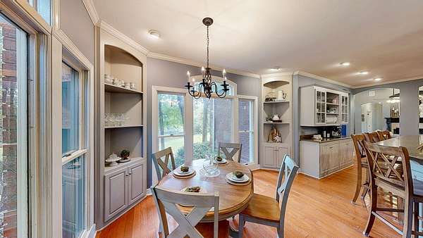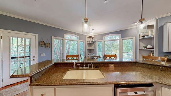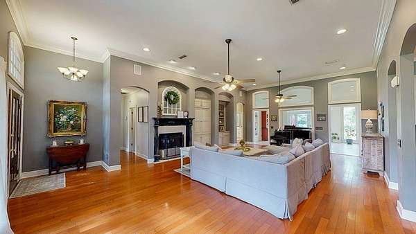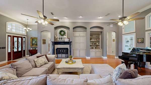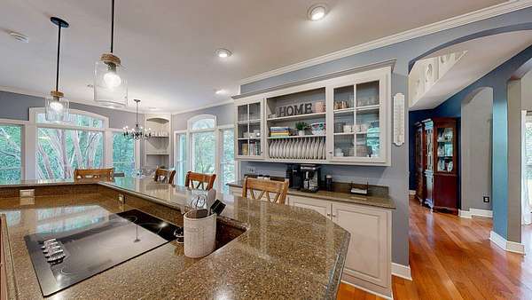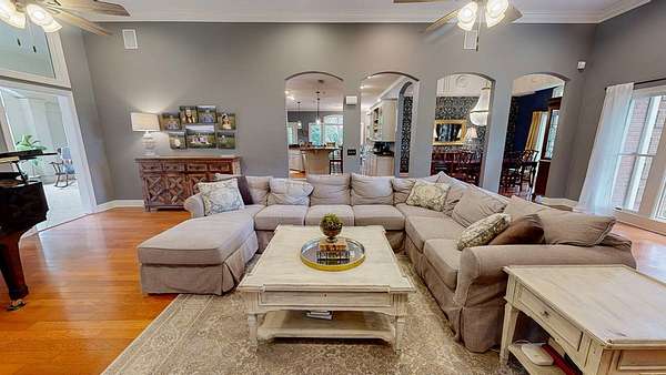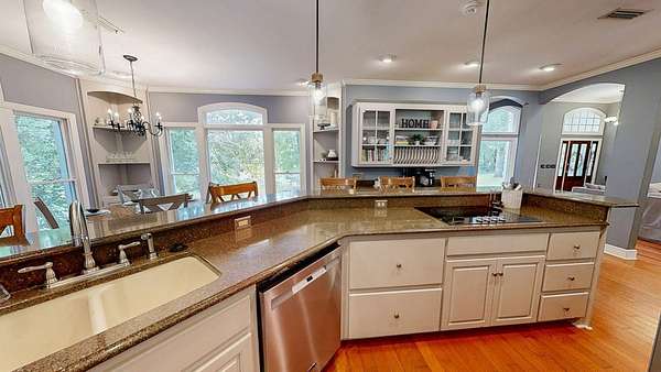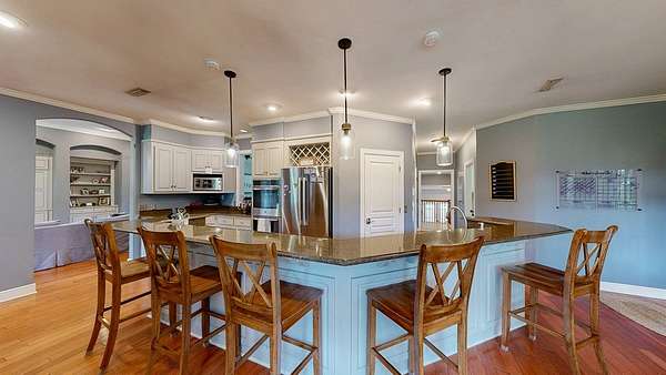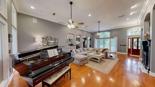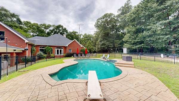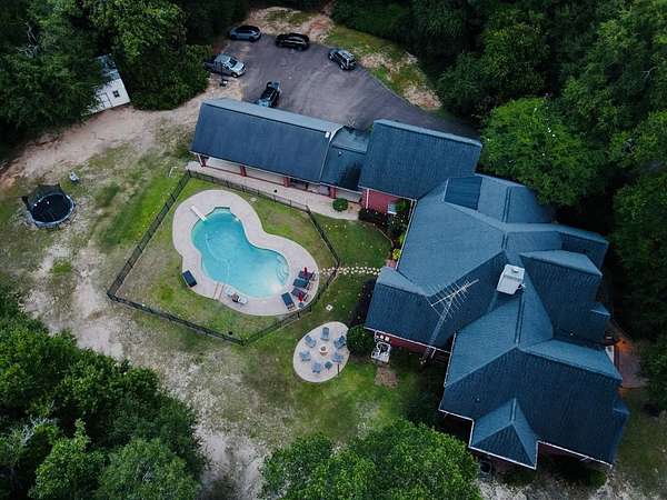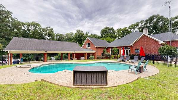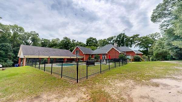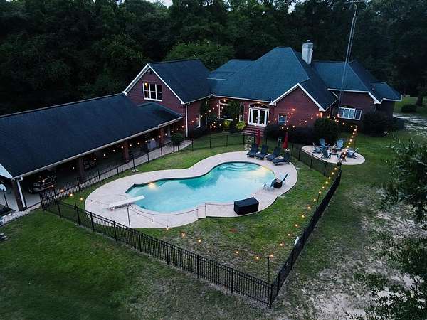 Tucked away on nearly 8 acres in Headland, this 4BD 4.5BA estate is a true Southern retreat offering space, privacy, and charm. With nearly 5,000 sqft, the home is designed for comfort and character. The eat-in kitchen features granite countertops, a Bosch refrigerator, glass stovetop, and double convection oven. It opens to a formal dining room with elegant wallpaper and a chandelier. The sunroom is filled with natural light and overlooks the pool, Peggy Martins, and pineapple guava. Just off the owner's suite is a private office. The suite has lake views, a jetted tub, walk-in shower, and his-and-hers closets. Wood floors run throughout, with generous storage, a large attic, and a mostly walkable crawl space with a bonus room upstairs. Outside, enjoy a fenced gunite pool, a 1.4-acre pond with powered gazebo, a 3-car carport, and a 20' shed with lean-to. Zoned for Headland schools and just minutes from town, this home offers the peace of country living with city convenience. Whether hosting or relaxing by the water, this one is something special.