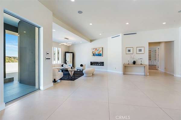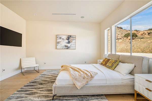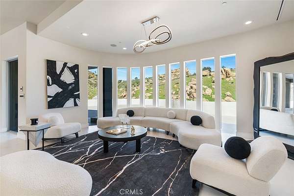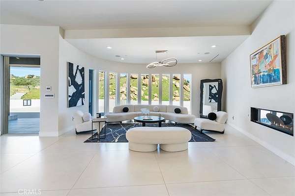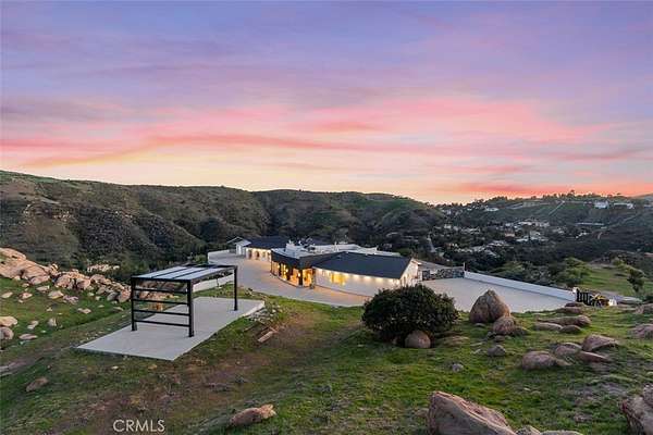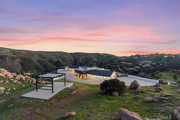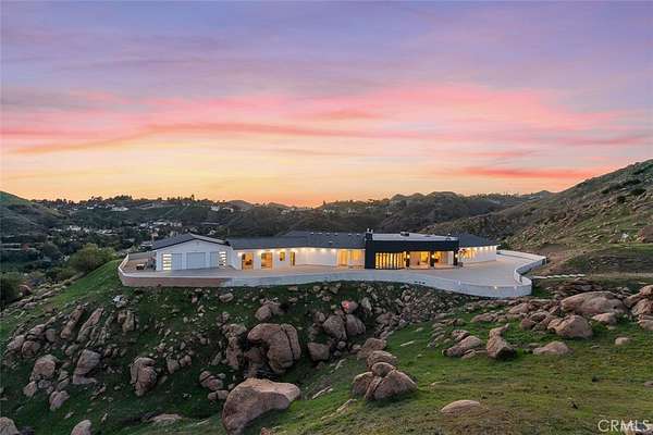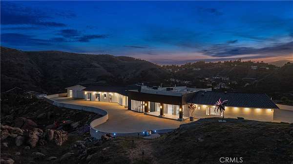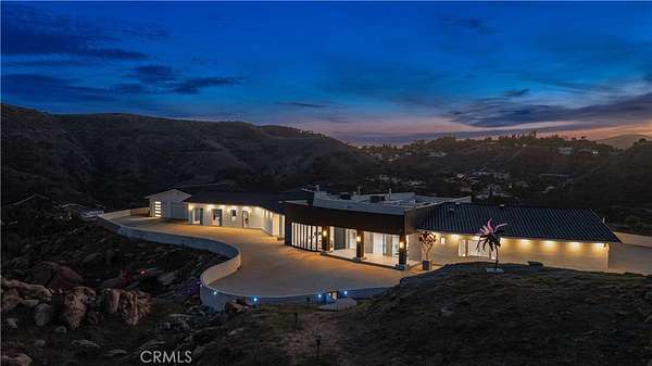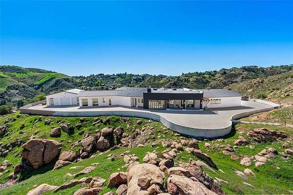 Discover the pinnacle of luxury living in this 2020-built, single-story modern estate, situated on over 31 private acres in the prestigious guard-gated community of Bell Canyon. Accessed via a triple-gated entry and a quarter-mile private driveway, this architectural masterpiece offers unobstructed 360-degree mountain vistas, ensuring both serenity and seclusion.