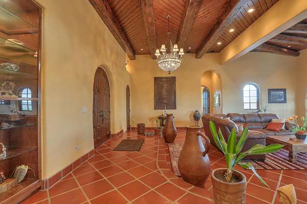 Wake up to sweeping mountain light and panoramic views in this Spanish Mission estate perched above Turtleback Mountain Resort. Set on 2.47 acres, the home offers privacy and a true sense of retreat, with mornings spent on sun-washed patios and evenings under expansive desert skies. Inside, soaring ceilings and dramatic architectural details create a feeling of calm grandeur, while warm Saltillo tile and handcrafted finishes add timeless character. Each bedroom is a private suite with its own en-suite bathroom, providing comfort and privacy for family and guests. Thoughtfully designed for beauty, efficiency, and everyday living, this home invites you to slow down and live expansively.