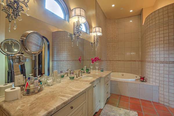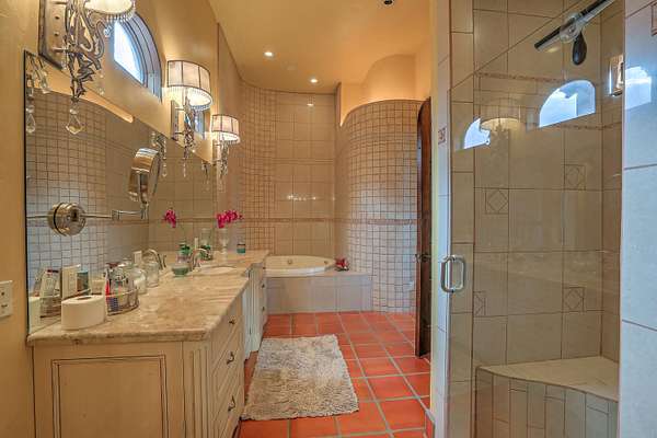 - Bathtub, Beamed Ceilings, Garden Tub Roman Tub, Great Room, High Ceilings, Home Office, Kitchen Island, Main Level Primary, Multiple Living Areas, Pantry, Separate Shower, Soaking Tub, Walk In Closets