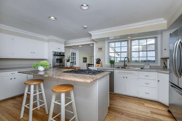 A GOLDEN OPPORTUNITY! Gorgeous views from the deck can be yours with this 3 bedroom, 2.5 bath charming cape. An open floor plan with dining/living room replete with fireplace makes entertaining a breeze with French doors out to the newly rebuilt expansive deck. Two guest rooms with renovated full bath are on the main floor in addition to a cozy library/den. The eat-in kitchen with granite countertops and newly refinished floors has a gas cooktop and a breakfast nook with access to the deck and the pool. The primary bedroom also with French doors out to the pool and grounds plus full bath are on the finished lower level along with laundry room, powder room and a great room for relaxing, watching tv or just chillin! Steps away are the gunite pool and charming pool house with it's own septic, full bath and kitchen. The pool house is surrounded by a beautiful expanse of level lawn, an orchard and mature shrubs. The attached two-car garage to the house makes for ease of entry. Take this house as it is - a pied a terre in the country or bump it up to its next level or create a totally new dream for yourself! Endless possibilities, minutes from Washington and all that Litchfield County offer. YOU DO NOT WANT TO MISS THIS!