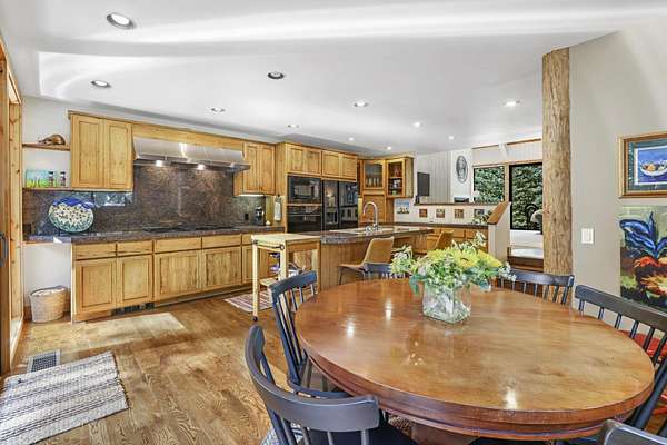 Elegant home in the desirable Gimlet neighborhood, just minutes from Sun Valley Resort and Bald Mountain. This beautifully updated residence features four ensuite bedrooms, a large loft, and a spacious great room with soaring cathedral ceilings and two fireplaces. Recently remodeled with all new windows, glass doors, and interior Alder doors and trim. Experience the perfect blend of mountain living, comfort and privacy in this Sun Valley retreat. Set on beautifully landscaped grounds, the property provides a true connection to nature. Expansive windows frame scenic views while allowing an abundance of natural light indoors. The kitchen, great room, and outdoor living areas flow seamlessly, creating inviting spaces for year-round enjoyment. The generous 1.5-acre parcel offers ample room for horses, gardens, or outdoor recreation. Peaceful yet close to everything, this home perfectly captures the Sun Valley lifestyle.