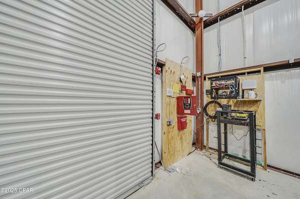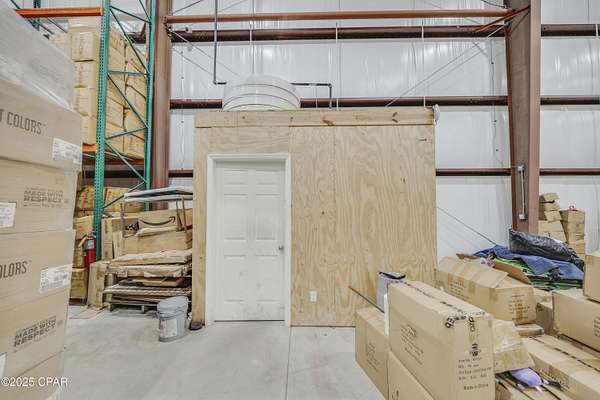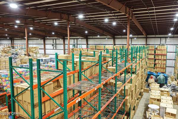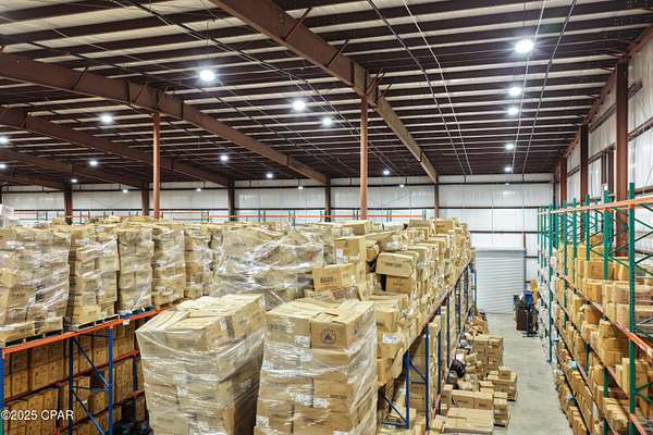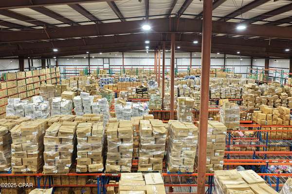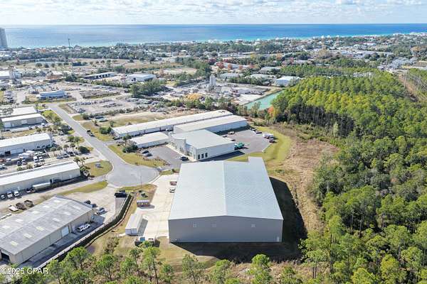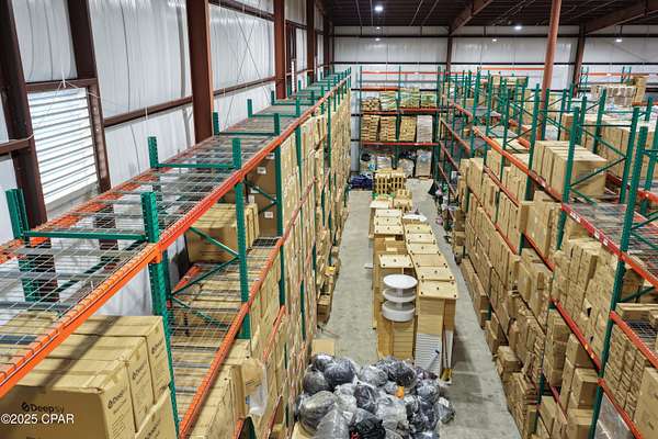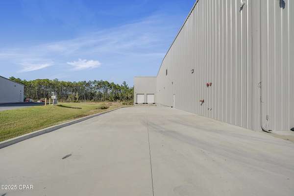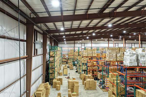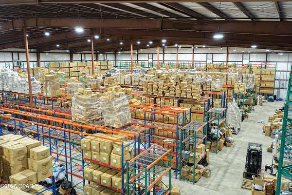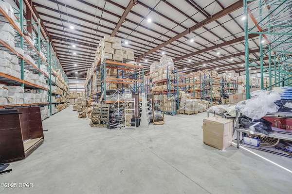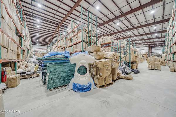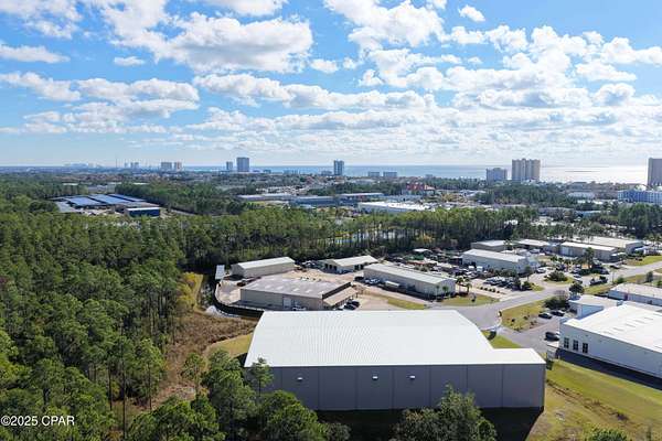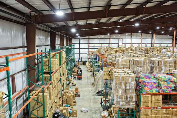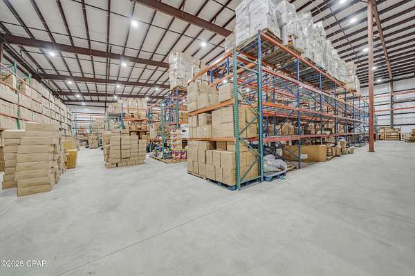 Rare opportunity to acquire a truly unique, industrial warehouse, tallest in the county adding ex located within Beach Commerce Park in Panama City Beach, Florida. Offered at $6,590,000, this owner-occupied facility can be vacated at closing, making it ideal for an owner-user or investor seeking an irreplaceable industrial asset. What sets this property apart is its extraordinary clear height, measuring approximately 48 feet at the center of the building and approximately 41 feet at the lowest point, far exceeding standard warehouse heights in the surrounding market. Typical industrial buildings in the area range from 18-24 feet clear, with newer construction rarely exceeding 30-32 feet. This dramatic vertical advantage creates exponentially more usable storage volume, allowing for high stacking, specialized racking systems, and operational efficiencies that simply are not possible in conventional warehouses. The building features a large clear-span layout, steel-frame construction, concrete slab foundation, metal panel exterior, and multiple overhead roll-up doors to support logistics, distribution, storage, or light industrial use. The property is situated within an established industrial park with excellent access and circulation, making it suitable for a wide range of warehouse users seeking scale, flexibility, and long-term functionality. This is a one-of-a-kind warehouse offering for the Panama City Beach market, replacement cost and zoning constraints make replicating this building height extremely unlikely. Buyer to verify all dimensions and specifications.