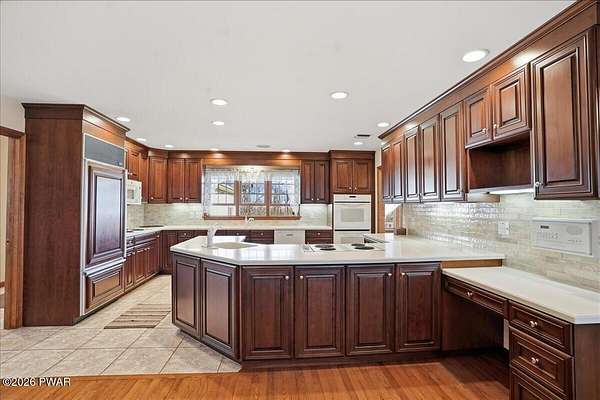 Est $4,253/moEverything you've ever wished for and it's all right here in this Grand center hall colonial offering 6 car garage. 3 car attached (heated) 3 car detached 2 story garage, Corian kitchen & baths/craft room. 2 fireplaces, Spectacular views & sunsets from oversized porches. Hardwood floors. Formal dining room and 1st floor family room. 4th bedroom on main floor. Laundry/craft room offers an abundance of counter space & cabinets, freezer & sink. Kitchen has sub zero refrigerator, 2 range tops, double wall oven & 2 sinks. This is a one of a kind