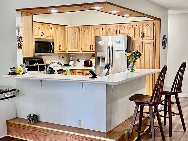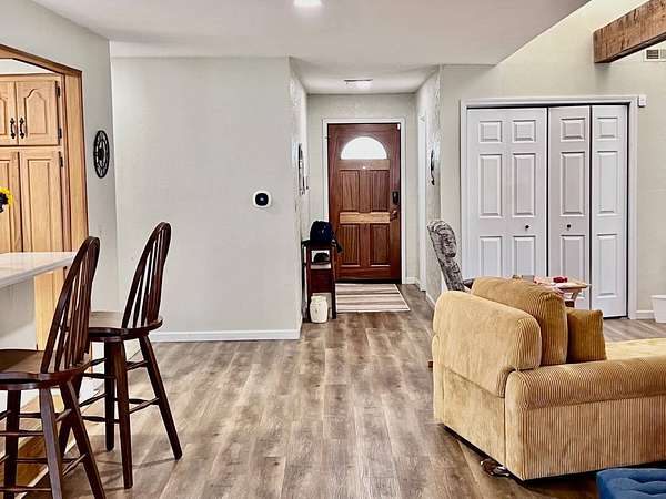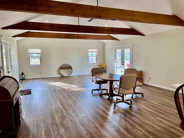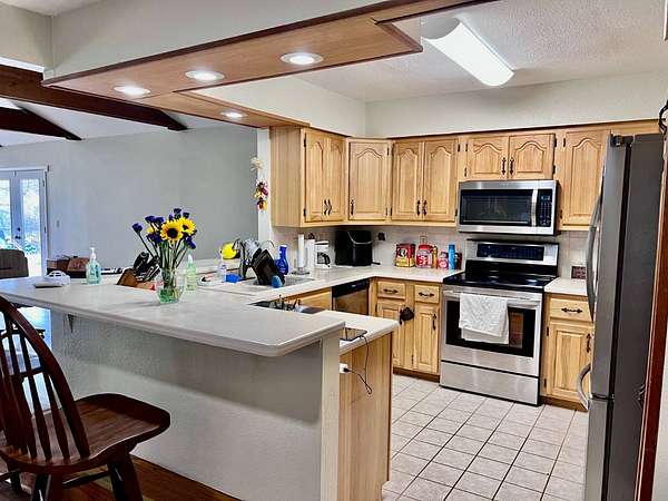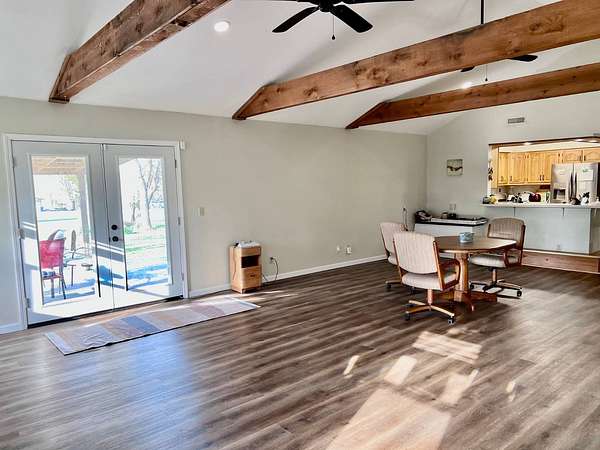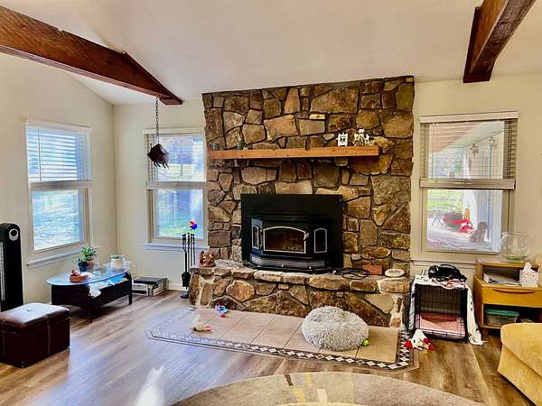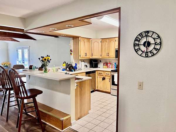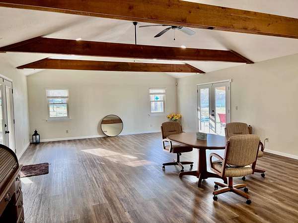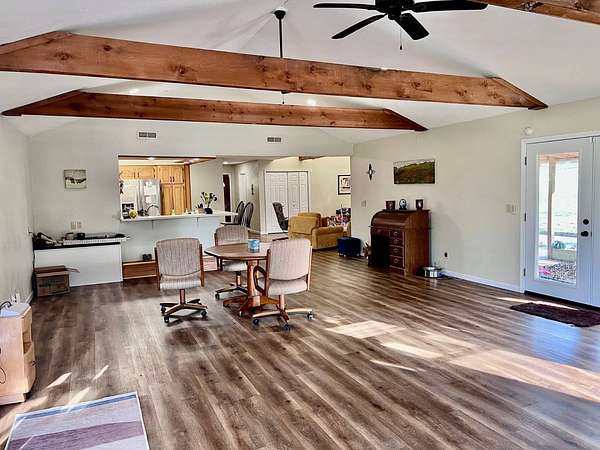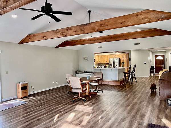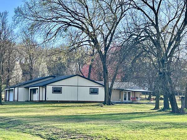 This home features numerous upgrades, including a spacious great room addition that makes the interior much larger than it appears from the street. The property sits on 1.79 acres, extending south to Southern Hills Drive and the center of the cul-de-sac going north (please see the attached map). The layout offers two large living areas with ample space for entertaining and dining. New windows, roof approximately 8 yrs old,hvac and hot water tank updated also. The open kitchen is a highlight, featuring solid surface countertops, a pantry, extensive storage, and a two-sided bar that seats six. The kitchen opens into the great room, which includes two patio doors leading to north and south covered patios connected by a concrete sidewalk. Outside, a finished additional building with sheetrock, flooring, and HVAC would serve perfectly as an office, gym, or workshop, with extra storage available in the loft area. Paved area for RV parking. The home includes three bedrooms and two bathrooms, two of which have walk-in closets. Both bathrooms have been updated, one with an onyx shower and the other with a marble tub surround. Please note that while the garage was originally designed for two cars, the addition of the laundry room has reduced the space to accommodate approximately one and a half cars. The sellers wish to be transparent about needed repairs, including some siding replacement and ceiling work in the great room. Please refer to the final photos in the set for details on these areas.