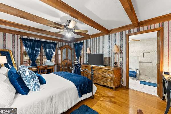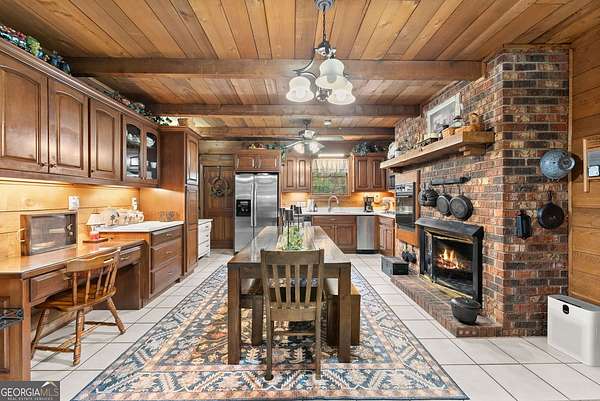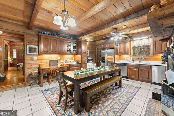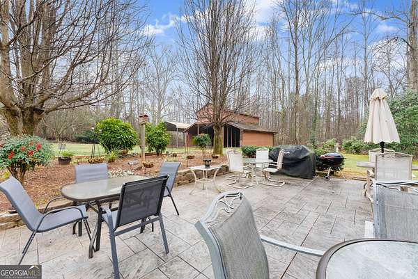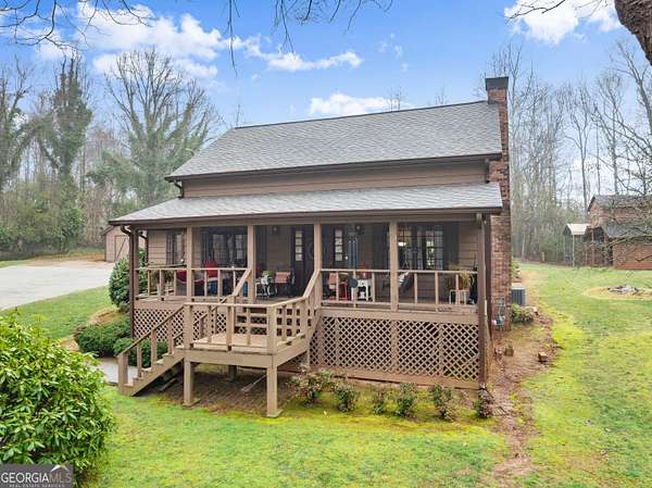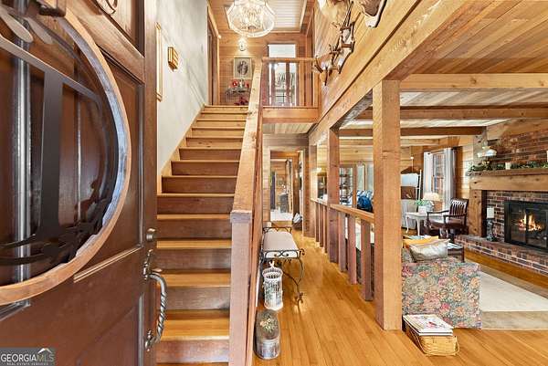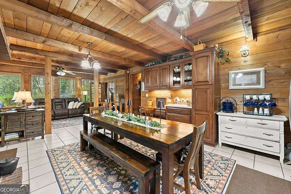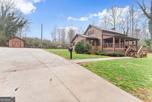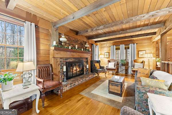 Rustic and truly one of a kind, this exceptional home blends natural charm with modern convenience. Showcasing stunning cedar beams both inside and out, the craftsmanship and character are evident from the moment you arrive. Inside, enjoy two inviting fireplaces with gas logs-one anchoring the family room and another creating a warm focal point in the kitchen. The spacious master suite is located on the main level and features a beautifully designed step-in tile shower in the master bath. Outdoor living is just as impressive, with a large patio complete with a gas grill hookup-perfect for entertaining or relaxing while enjoying the peaceful surroundings. Situated on over three acres, this property offers privacy and space with no HOA restrictions. Additional highlights include a large shed ideal for RV parking, a natural gas whole-house generator for peace of mind, and plenty of room to store boats, equipment, or toys. Conveniently located near Cumming City Center and downtown Cumming, this rare property offers the best of quiet country living with easy access to shopping, dining, and entertainment.