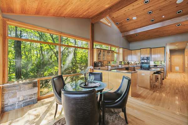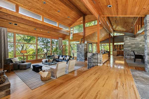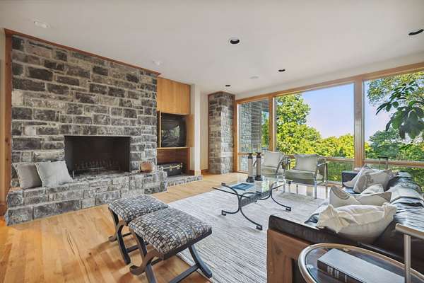 From the moment you step through the front door, you'll be captivated by awe-inspiring, panoramic views of the Nashville skyline. Expansive walls of windows, sun drenched interiors, and deck off of every room create a seamless connection to the surrounding treetop canopies, perfect for both entertaining and quiet relaxation.