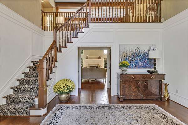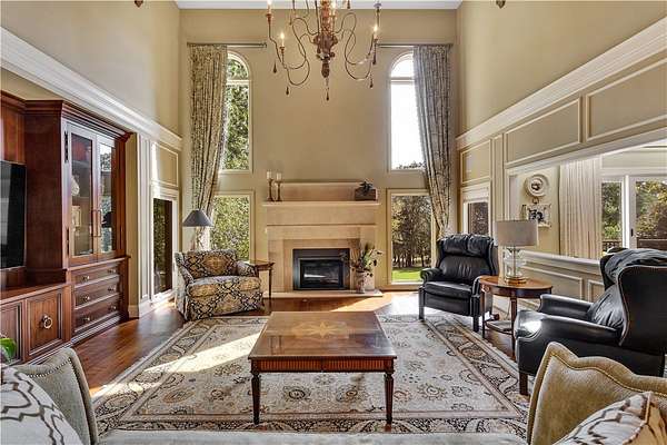 Private 3.3 acre lot w/mature trees, inground pool backs to shore&incredible lake view.7500+ sqft of living space really only 10 yrs old as was rebuilt to the studs after fire.Public sewer&well w/public H2O at curb.Impressive drive,walkway and stone&brick exterior. 10ft etched glass dbl doors to spacious hardwd 2st foyer w/stunning white trim throughout.French doors to Form LR&DR,both w/wood flrs.Den w/Full wall wainscotting&builtins&walkin closet.Magnificent 2st great rm w/wall of blt ins,wood beams&marble&limestone FP.Gourmet kitch w/Custom cabinets leathered granite counters,Jenn-air 6 burner gas commercial range&hood,tile bsplash contrasting island&butler pantry w/bev fridge&sink.Morn rm w/seating&brkfst bar,vaulted&skylights.Mudrm/laun to 4car heated grg. 5 BRs up,vltd mast w/2 walkins.Luxurious bth,heated flrs,glass&ceram shwr,soak tub.2BRs w/walkin&full bth.2BRs w/jack&jill.All closets w/blt ins.Finishd walkout low lev,bth5,gym,2nd FP,wet bar,gamerm. 36x18 heatd pool abuts lake.