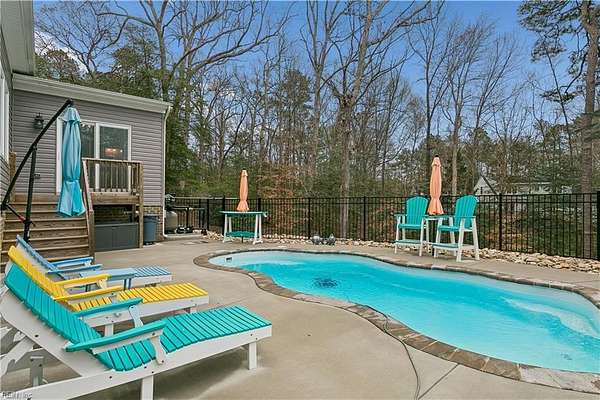 Tucked away at the end of a quiet cul-de-sac on 1.9 private acres, this stunning custom-built residence blends modern farmhouse style with timeless craftsman detail. Built just four years ago, the home offers expansive living spaces, a main-level primary suite, and a private office with French doors. The heart of the home is a beautifully designed kitchen featuring a wine refrigerator, bar sink, and generous island, all opening to a warm and inviting living area centered around a striking stone gas fireplace with integrated surround sound. Outdoor living is equally impressive with a resort-style saltwater pool framed by a natural river rock retaining landscape, along with a generously sized covered front porch perfect for morning coffee or evening gatherings. Additional upgrades include a whole-house generator, tankless water heater, spacious garage, large concrete driveway, and extensive walk-in attic storage. A rare opportunity to own a nearly new custom home.