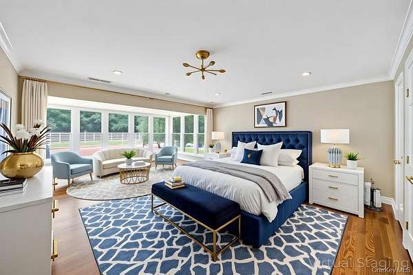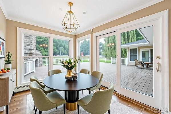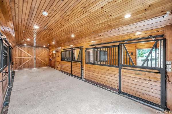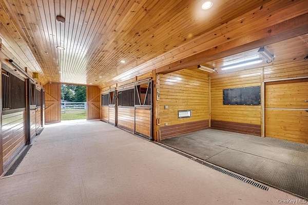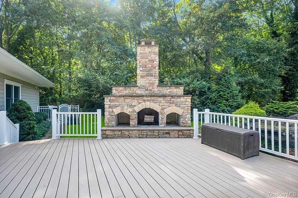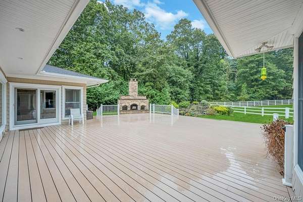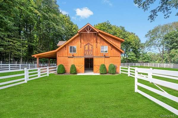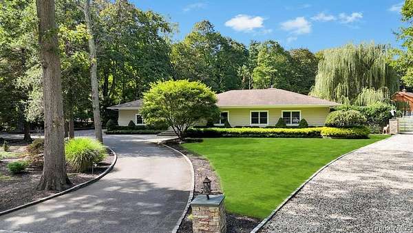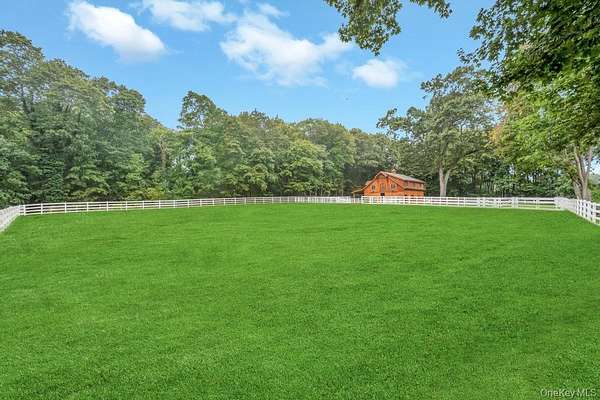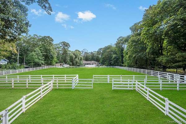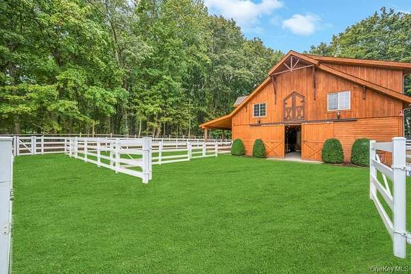 Welcome to 109 Oakside Dr., your dream equestrian retreat, set on 2 scenic acres in the heart of Smithtown. This updated 4-bed, 3.5-bath ranch blends easy single-level living with true equestrian amenities. An eat-in kitchen with granite counters and stainless appliances opens to a spacious family room anchored by a stone fireplace. Throughout the home you'll find hardwood floors, custom millwork, and recessed lighting. The private main bedroom offers direct access to a low-maintenance Azek deck overlooking a serene backyard with outdoor fireplace, waterfall, and koi pond. A finished basement adds flexible recreation/storage space. For horse enthusiasts: a meticulously maintained barn with 4 heated stalls, tack room, washroom, and hayloft; plus a PVC-fenced paddock with lighting and irrigation for year-round care. Move-in ready and thoughtfully appointed-an exceptional property where comfort, convenience, and equestrian living come together.