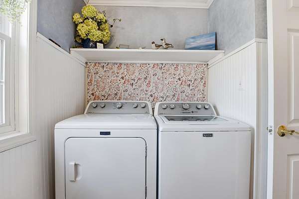 - Dishwasher, Dryer, Gas Range, Microwave, Range, Refrigerator, Washer