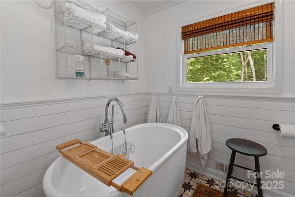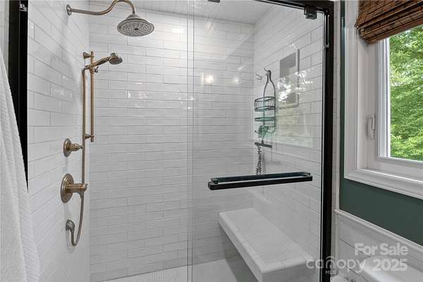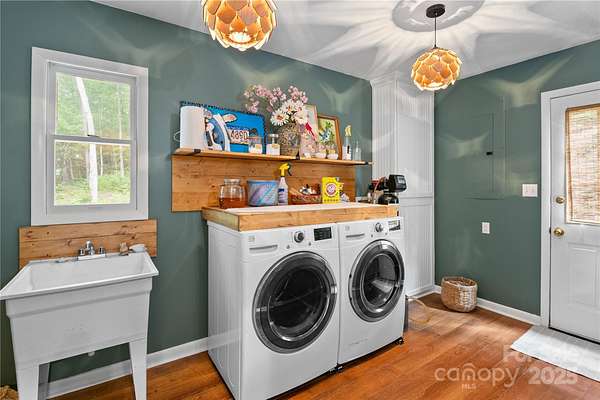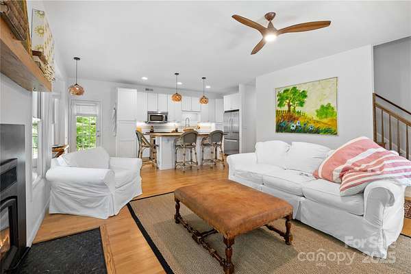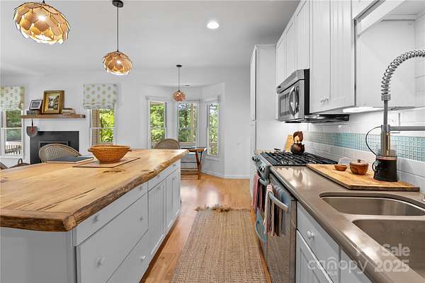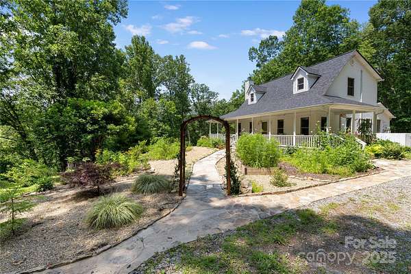 NEW list price $636,000! This beautiful 1.5 story farm-style home situated on over 5 lovely wooded acres is waiting just for you! Move-in ready home features 3 bdrm/3 bath (2 ensuites upstairs), an updated kitchen with stainless appliances, Silestone countertops, glass tile backsplash and a gorgeous live-edge kitchen island/breakfast bar. The open floor plan is light and airy, with lots of windows. In the cool evenings, cozy up to the wood burning fireplace in the living area. A spacious, covered, wrap-around porch both hugs and extends the living space with views of the most amazing flower gardens and seasonal multi-ridge mountain views. Raised beds for your vegetables too! Wooded setting with end of road privacy, this parcel affords room to add an additional dwelling unit if so desired. Septic permit is for 4 bedrooms, buyers agent to verify. Generac generator conveys, no damage from Helene. Convenient to Downtown Waynesville restaurants, shopping and medical offices. Under 30 minutes to Asheville with quick access to I-40.