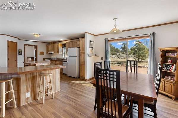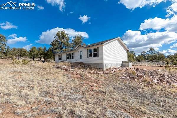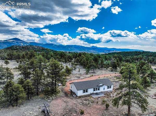 Escape the hustle and bustle and discover peace and tranquility in the beautiful mountains of Florissant. This meticulously maintained 3-bedroom, 2-bath ranch-style home offers 1,856 square feet of comfortable living space situated on just over 5 scenic acres in a cul-de-sac. Step inside to an inviting open floor plan filled with natural light and beautiful views out every window. The spacious living area flows seamlessly into the kitchen and dining space, making it perfect for everyday living and entertaining. The kitchen offers ample cabinetry, generous counter space, and a functional island for meal prep and gathering. The primary suite provides plenty of space and comfort, featuring a large walk-in closet and an adjoining private bath. Two additional bedrooms located on the opposite side of the home offer flexibility for guests, a home office, or hobbies. Pride of ownership shines throughout the home, with thoughtful care and maintenance evident in every room. Outside, experience the true beauty of mountain living with expansive views, mature trees, and unique natural rock formations right on your own land, creating a stunning Colorado landscape. With over five acres to enjoy, there's plenty of space to relax, explore, and take in the peaceful surroundings. Whether you're enjoying your morning coffee while watching local wildlife or soaking in the quiet mountain air, this property offers the perfect balance of privacy, comfort, and natural beauty.