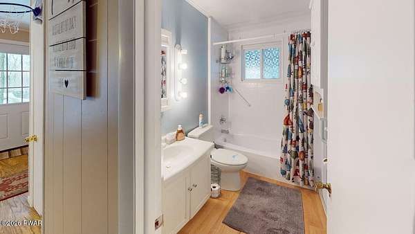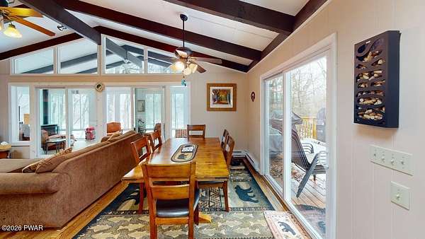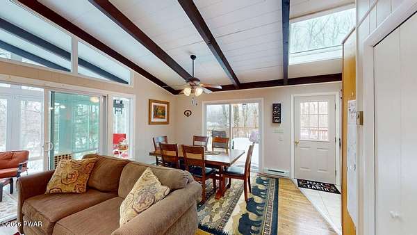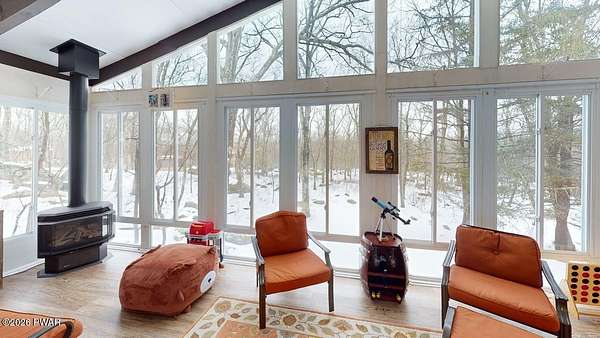 Tucked away on 3.12 acres backing up to State land in amenity-rich Hemlock Farms neighborhood with great security, fire and rescue and gated entrance, this 3 bedroom 2 bathroom home offers great country decor with lots of windows and treetop views. Updated Kitchen and bathrooms, open layout and familyroom, plus a sunroom with propane stove. Living room offers a brick wall fireplace, hardwood floors and split heating/airconditioning unit. Large open deck for outdoor entertaining! Bring the family and enjoy country living!