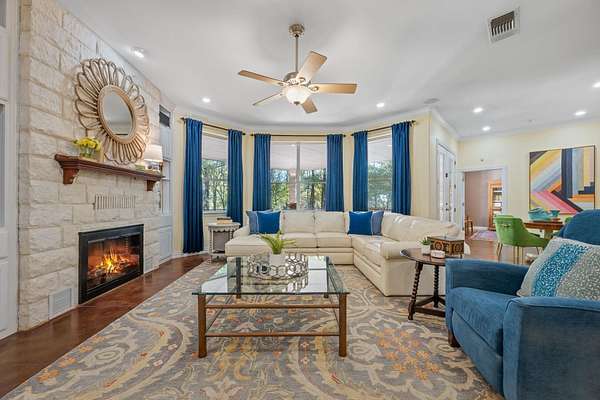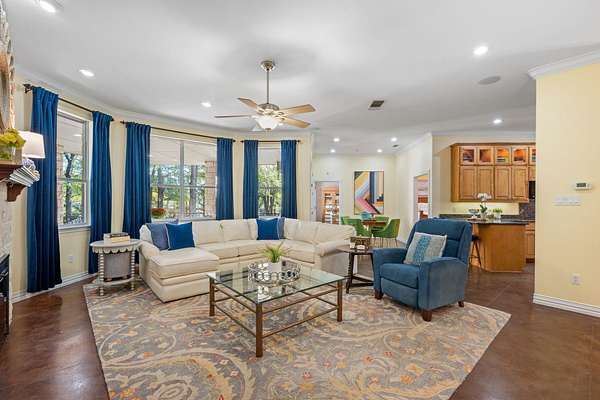 Premium, oversized lot in gated Gabriel's Overlook! Extremely private with no back neighbors * Over 100 huge oak and elm trees * West-Facing so fully shaded from afternoon sun * Private forest in your backyard with natural draw * Deer and wildlife galore! Add in a custom, 3000 sqft one-story ranch home with expansive porches, and you have the idyllic hill country setting to start creating new memories! You will fall in love with the large windows as you walk inside showcasing your private treed back yard. The open floor plan - living, kitchen and nook areas create the perfect entertaining and family gathering space. The kitchen features granite counters, eat-in bar, and solid maple wood cabinetry with glass-front uppers which illuminate to showcase your favorite culinary pieces. The private office is purposefully located in the rear of the home so that nature can be your backdrop as you work remotely. Four bedrooms, including a primary with his & her closets and a clawfoot tub, guest room with an adjacent full bath, and two more bedrooms with an extended jack and jill bath, each with its own private vanity area and water closet. A dedicated craft/hobby/storage room and a formal dining room round out the interior space. Don't miss the 30' deep three-car garage, big enough for your truck and also equipped with a climate-controlled storage-workshop room. The backyard comes complete with a playscape, storage shed, and an in-ground washer toss game...all this while still having the perfect spot for a pool if desired. The location is prime in one of Georgetown's most coveted, gated neighborhoods, zoned to Liberty Hill ISD, minutes from HEB and countless retail shopping & restaurants, including the coming-soon Costco and Target. Close to all major Austin thoroughfares like the newly opened 183 North tollway and Ronald Reagan Blvd/Parmer Ln. Don't let this one get away...WELCOME HOME!