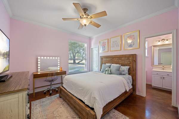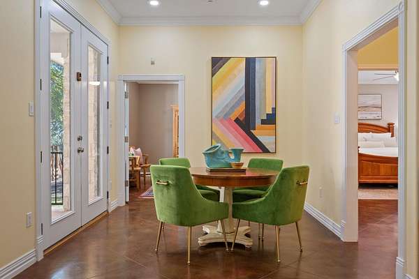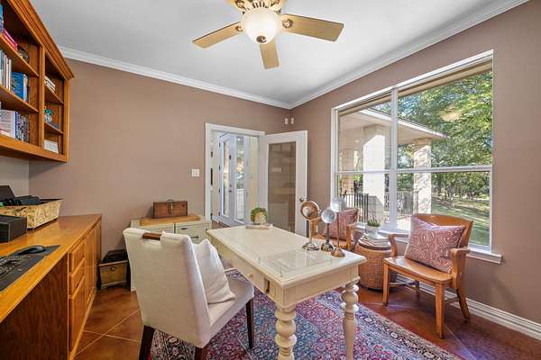 - Bookcases, Breakfast Bar, Built-In Features, Ceiling Fan(s), Ceiling-High, Double Vanity, Eat-In Kitchen, Granite Counters, Multiple Dining Areas, Natural Woodwork, Primary Bedroom On Main, Recessed Lighting, Two Primary Closets, Walk-In Closet(s)