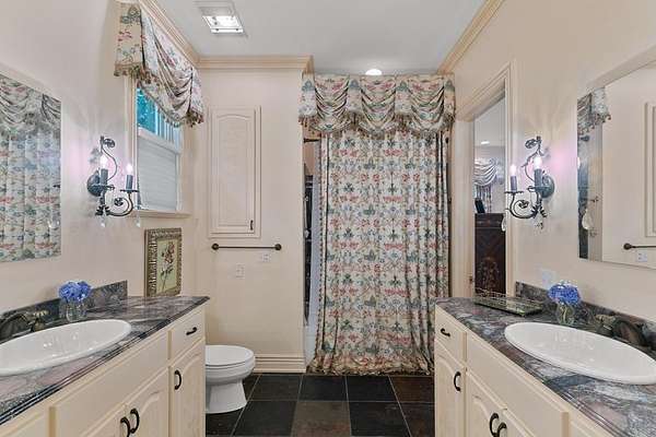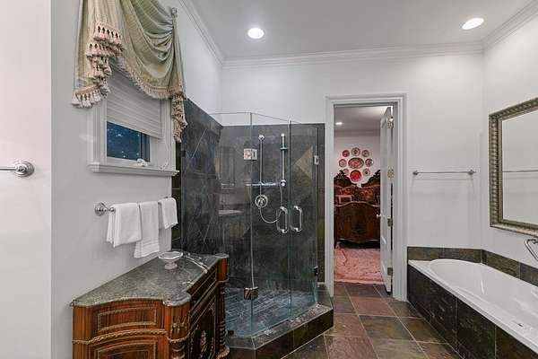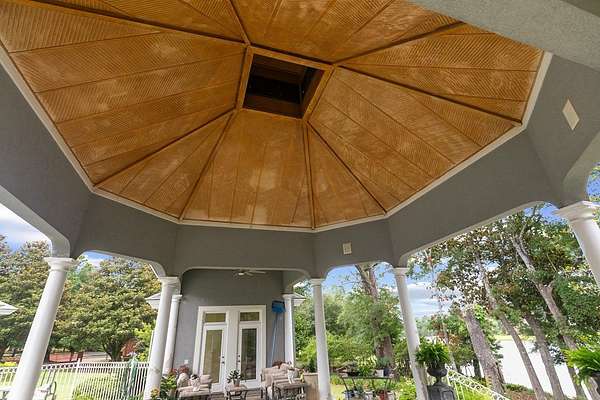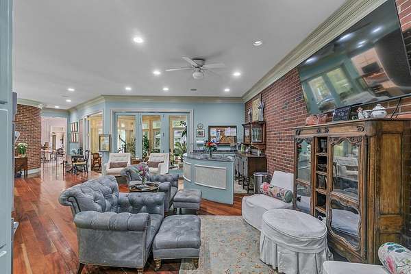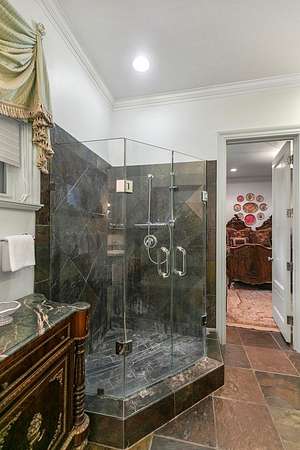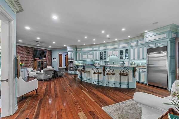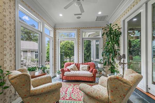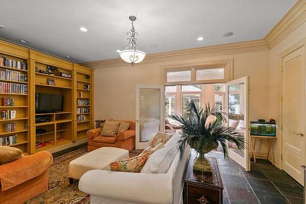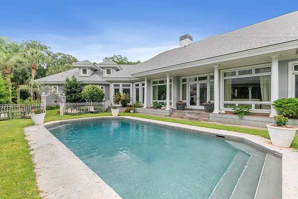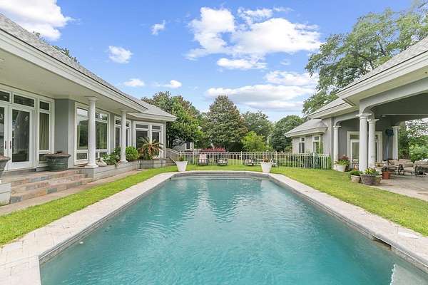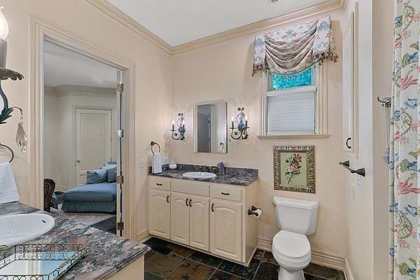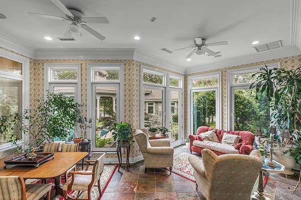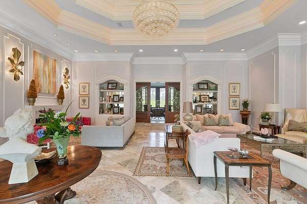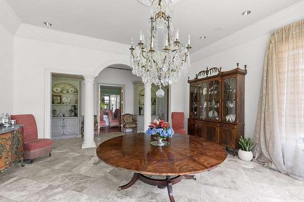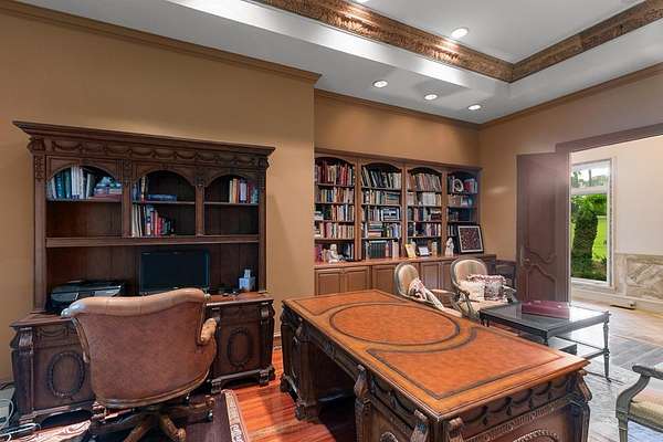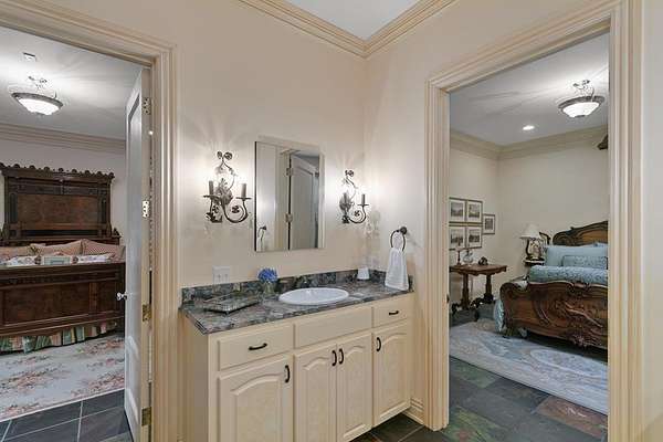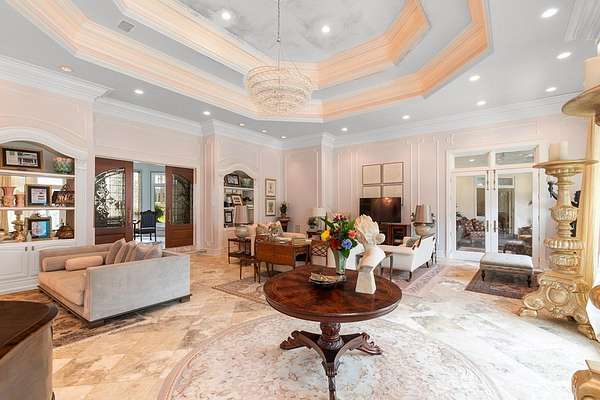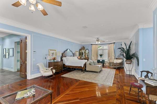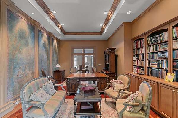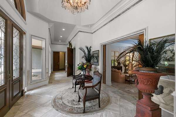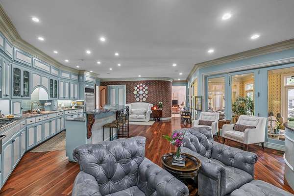 Welcome to an extraordinary executive estate in the heart of the highly sought-after Highlands Subdivision on Royal Highlands Drive. Nestled on 2 pristine acres with breathtaking lake views on one side and golf course views on the other, this custom-designed masterpiece offers the ultimate in privacy, craftsmanship, and refined Southern living. This expansive residence features 6 bedrooms, 4 full baths, and 2 half baths, thoughtfully designed to accommodate multigenerational living or a large family. The grand foyer welcomes you with custom stained-glass doors, marble wainscoting, and handcrafted crown molding you simply must see to believe. From the Brazilian Rain Forest hardwood floors to the two elegant sunrooms, every inch of this home speaks of timeless quality. The grand room is a showstopper, anchored by a gas fireplace and flooded with natural light from large operable windows. The kitchen is a chef's dream: oversized and open, featuring a 6-burner gas stove, double ovens, warming drawer, ice machine, and toe/under-cabinet lighting throughout. The adjacent bar area, large pantry, and custom cabinetry with pull-outs make this a true entertainer's space. Retreat to your massive primary suite with separate his and hers walk-in closets, spa-like ultra tub & sauna, and a luxurious steam shower with dual heads. The children's wing includes 4 spacious bedrooms, Jack & Jill baths with slate showers, oversized closets, its own den/playroom, and even a dedicated laundry room.