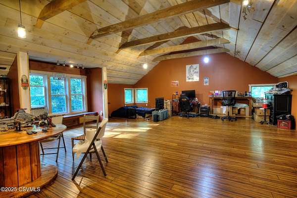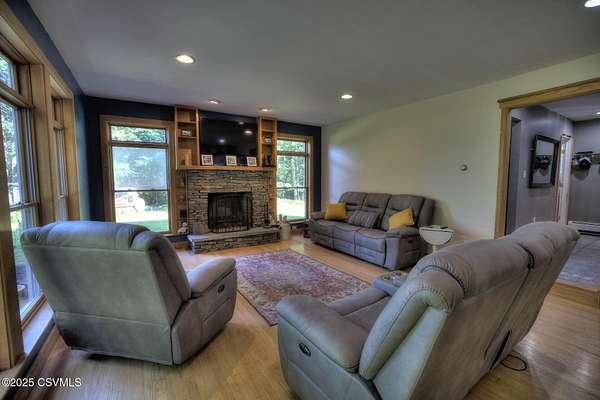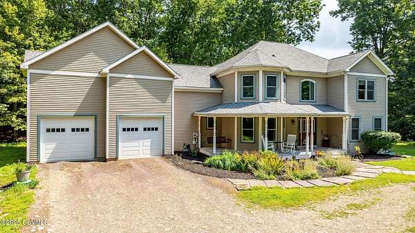 Your private retreat awaits on 49.7 wooded acres just outside Millville! This custom-designed home offers over 4,000 square feet of finished space above grade, featuring 3 bedrooms and 2.5 bathrooms. The sunken living room features heated hardwood floors and a cozy wood-burning fireplace. An open layout seamlessly connects the kitchen, dining, and living areas, while a formal dining room, den, and upstairs bonus room provide added flexibility. Oversized windows fill the home with natural light, framing peaceful views of mature red oak and chestnut trees. The heated rec room over the garage offers additional space for entertaining or hobbies. Tucked deep into the acreage, this home combines privacy, craftsmanship, and comfort in a one-of-a-kind setting. Contact Brian Fisk 570-336-6391