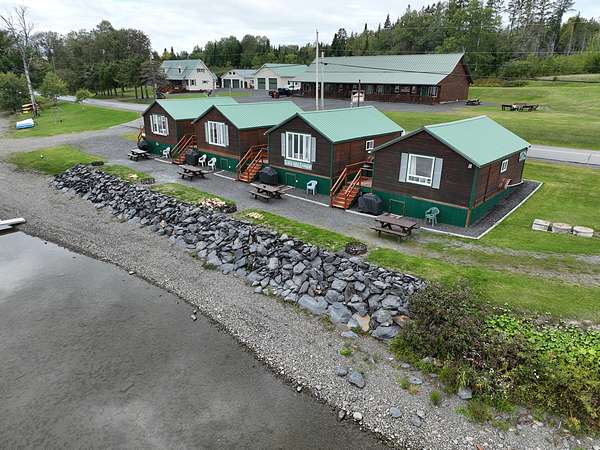 full bathroom. Amenities include a refrigerator, electric stove, microwave, TV, coming completely furnished. There are picnic tables & grills for each unit. In the lodge building there are two laundry areas, one coin op for guests and one for housekeeping. Lakefronts are four cabins each with two bedrooms, amenities include kitchen/living room combo, propane stoves, refrigerators, microwaves, TV's, full bathrooms, and are completely furnished. There are four picnic tables, propane grills, and fire rings lakefront. Direct access to launch your boat from the property. The property has metal roofs on all structures and are open year-round. Long Lake offers over 6000 acres with a maximum depth of over 160'. It is home to salmon, brook trout, smelts, and cusk. It has a history of offering an exceptional fishing experience all four seasons. Swimming and boating during the summer months, while ice fishing on the lake, cross-country skiing, snow shoeing during the winter months plus snowmobiling on endless trails in Aroostook County offering endless recreational activity. If you have a passion to fish, hunt, snowmobile, or provide a place for folks to come and experience outdoor adventures, Long Lake Camps must just be the answer.